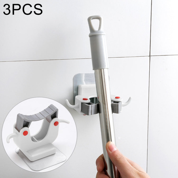 3 PCS Mop Broom Holder Wall Mounted Kitchen Hanging(White)