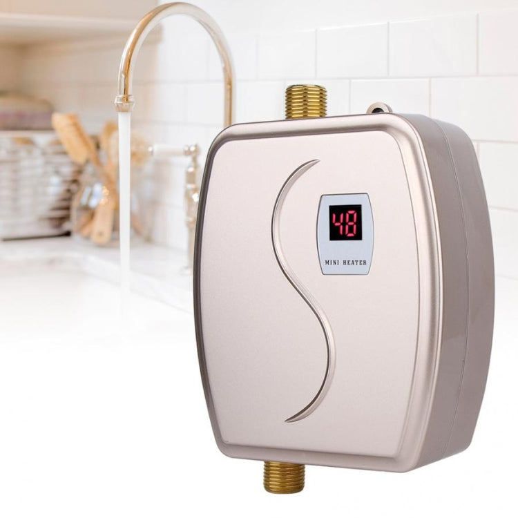 3800W Mini Electric Tankless Instant Hot Water Heater Bathroom Kitchen Washing Water Boiler Household Kitchen Appliance, Plug:220-240V UK Plug(Gold)