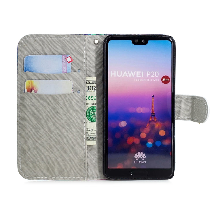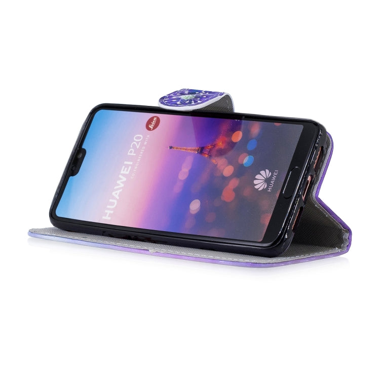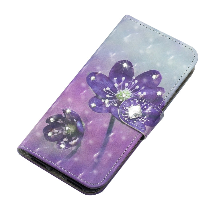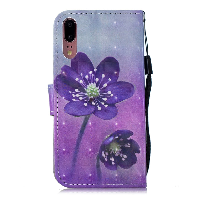 3D Diamond Encrusted Painting Pattern Coloured Drawing Horizontal Flip PU Leather Case with Holder & Card Slots & Wallet For Huawei P20(Purple Flower)