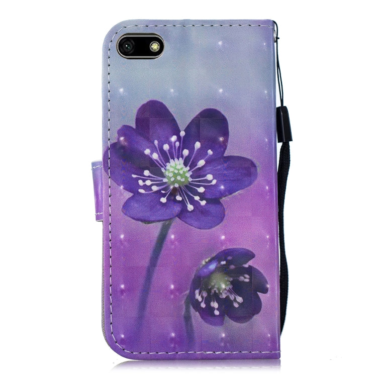 3D Diamond Encrusted Painting Pattern Coloured Drawing Horizontal Flip PU Leather Case with Holder & Card Slots & Wallet For Huawei Y5 (2018) / Y5 Prime (2018)(Purple Flower)
