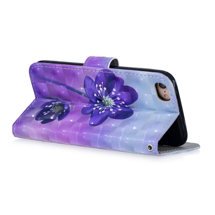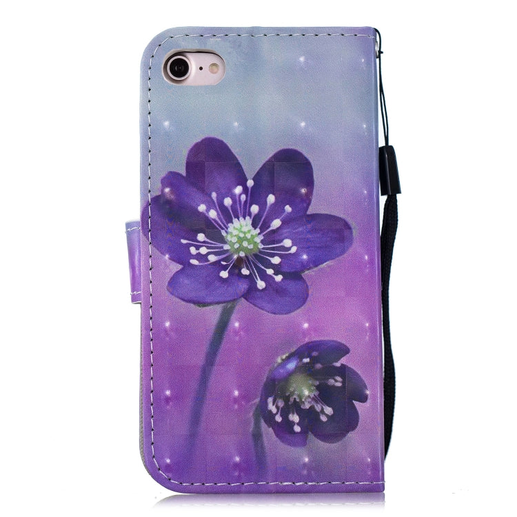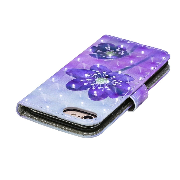3D Diamond Encrusted Painting Pattern Coloured Drawing Horizontal Flip PU Leather Case with Holder & Card Slots & Wallet For iPhone 7 & 8(Purple Flower)