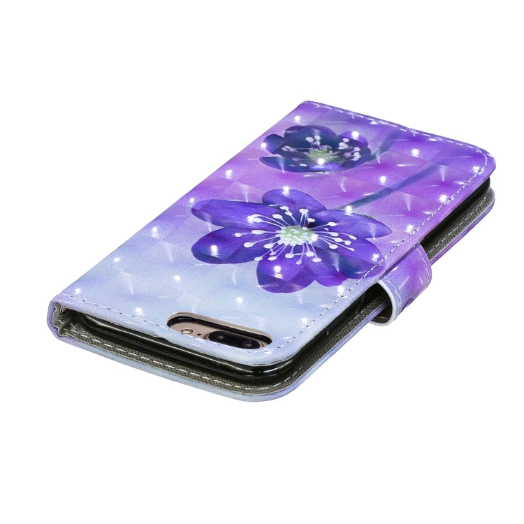 3D Diamond Encrusted Painting Pattern Coloured Drawing Horizontal Flip PU Leather Case with Holder & Card Slots & Wallet For iPhone 7 Plus & 8 Plus(Purple Flower)
