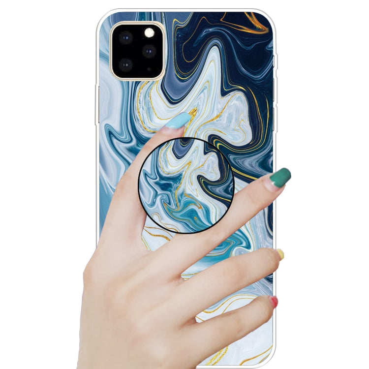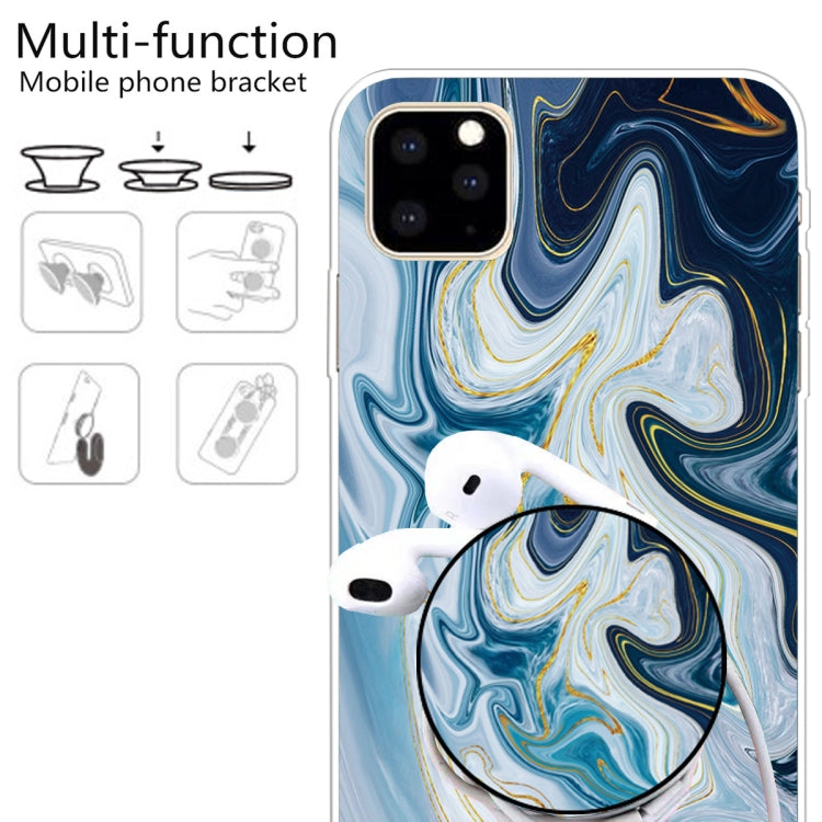 3D Marble Soft Silicone TPU Case Cover with Bracket for iPhone 11 Pro(Golden Line Blue)