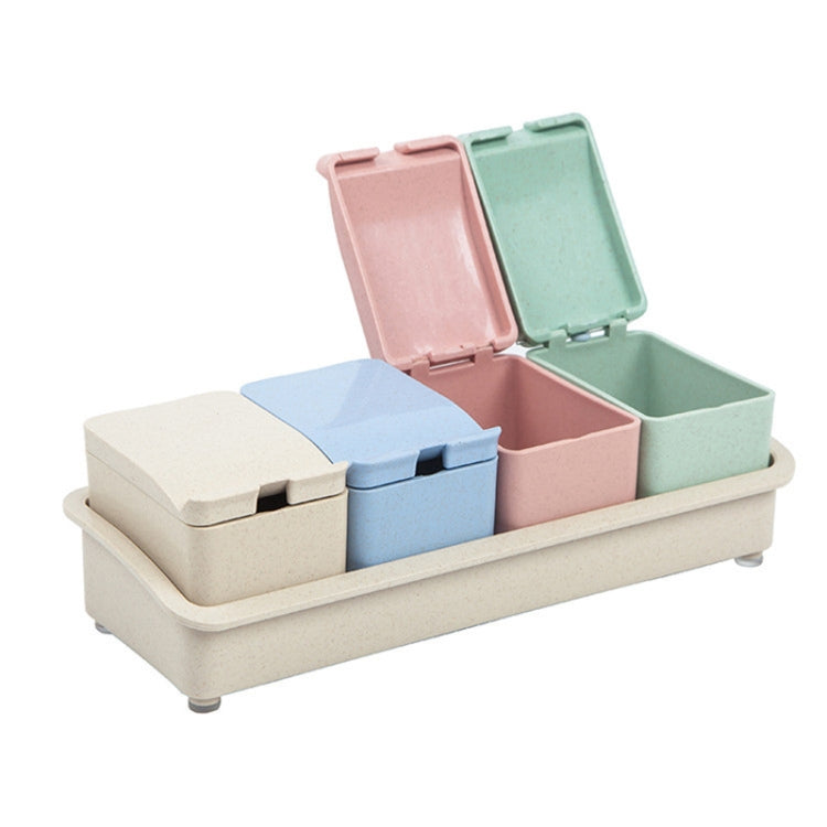 4 PCS Wheat Straw Plastic Seasoning Jar Set Kitchen Condiment Box Cruet Salt Pepper Shakers