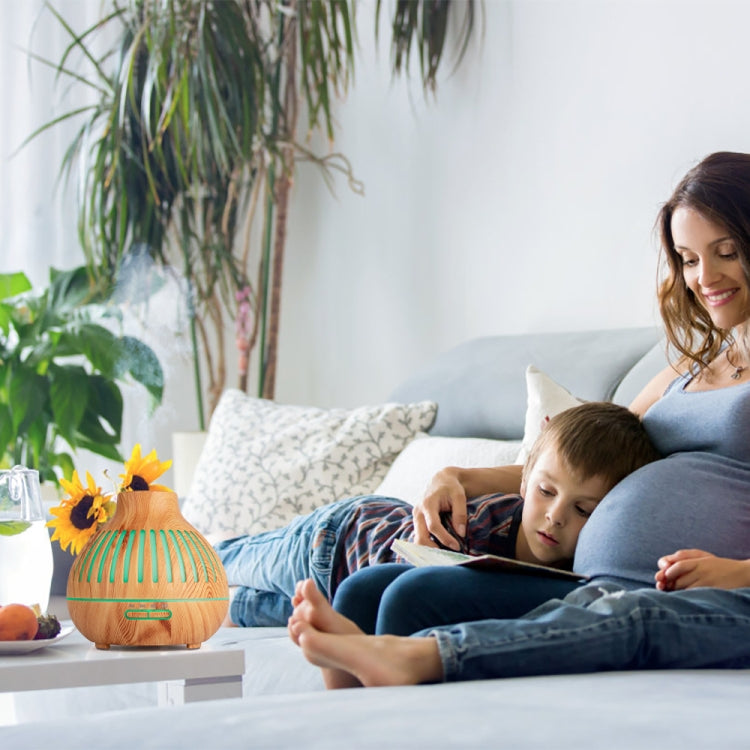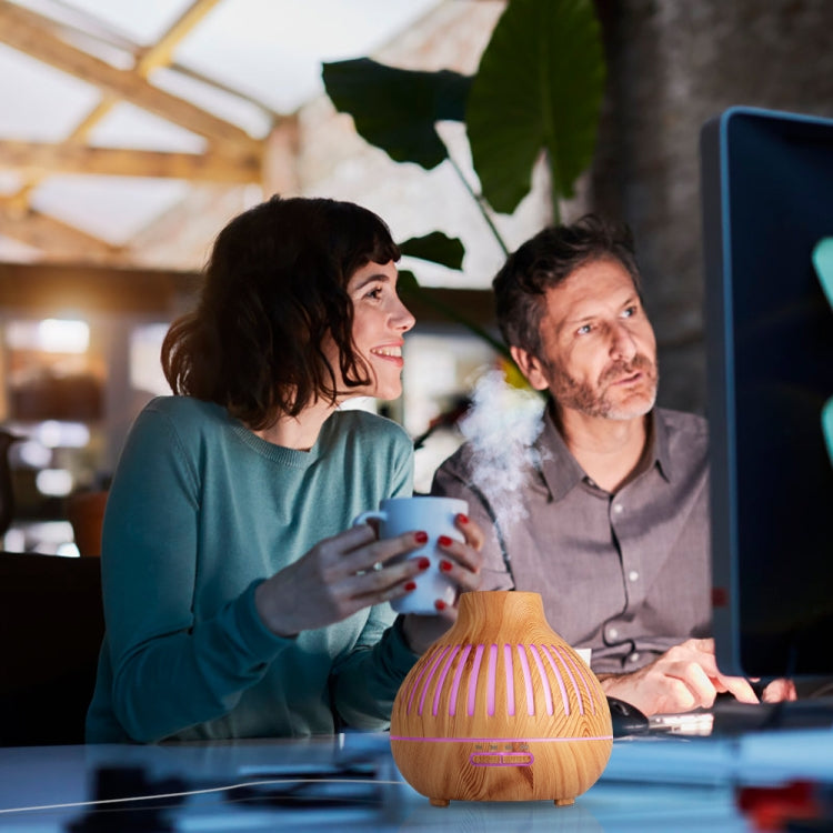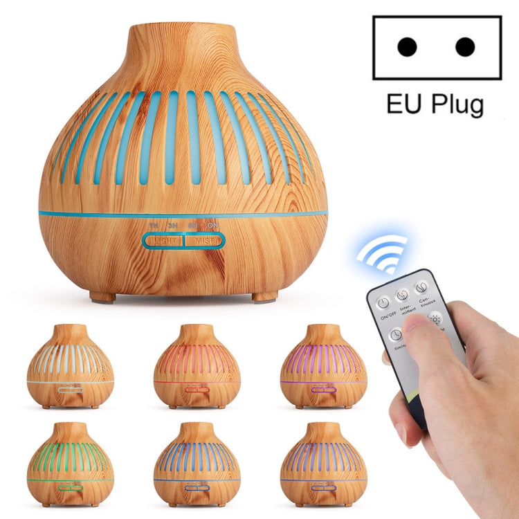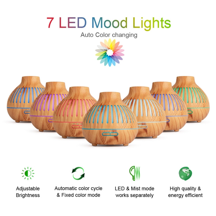 400ml Wood Grain Stripes Air Humidifier Aroma Essential Oil Diffuser 7 Color LED Lights Air Purifier with Remote Control, Power Plug:EU Plug(Light Wood Grain)