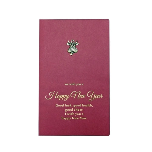 8 PCS Metal Red Special Paper Greeting Card Retro Bronzing New Year Greeting Card(Bull Head)