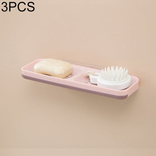 3 PCS Double-layer Drain Soap Box Wall-mounted Toilet Soap Rack Bathroom Shelf(Light Pink)