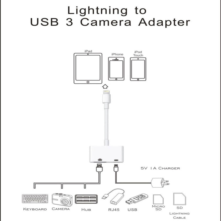 11cm 8 Pin Male to USB & 8 Pin Data Charging Cable Camera Reader Adapter, For iPhone / iPad / iPod Touch ,Support System From IOS 9.2 to IOS 11