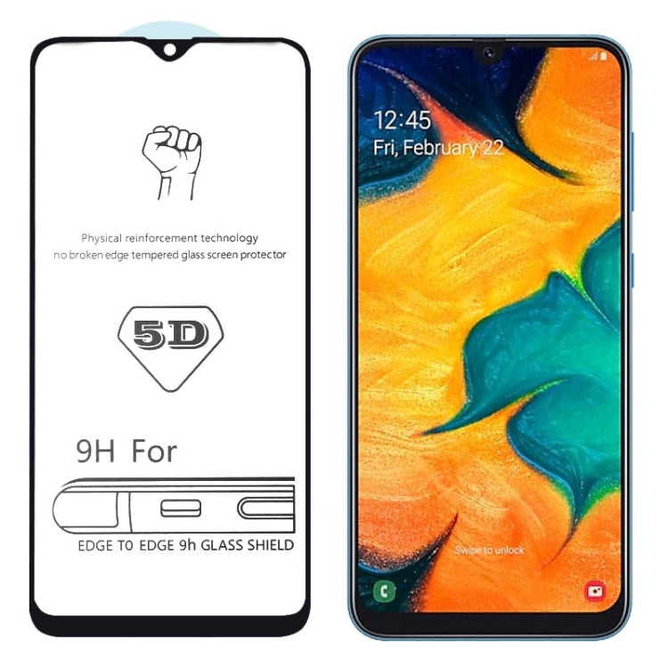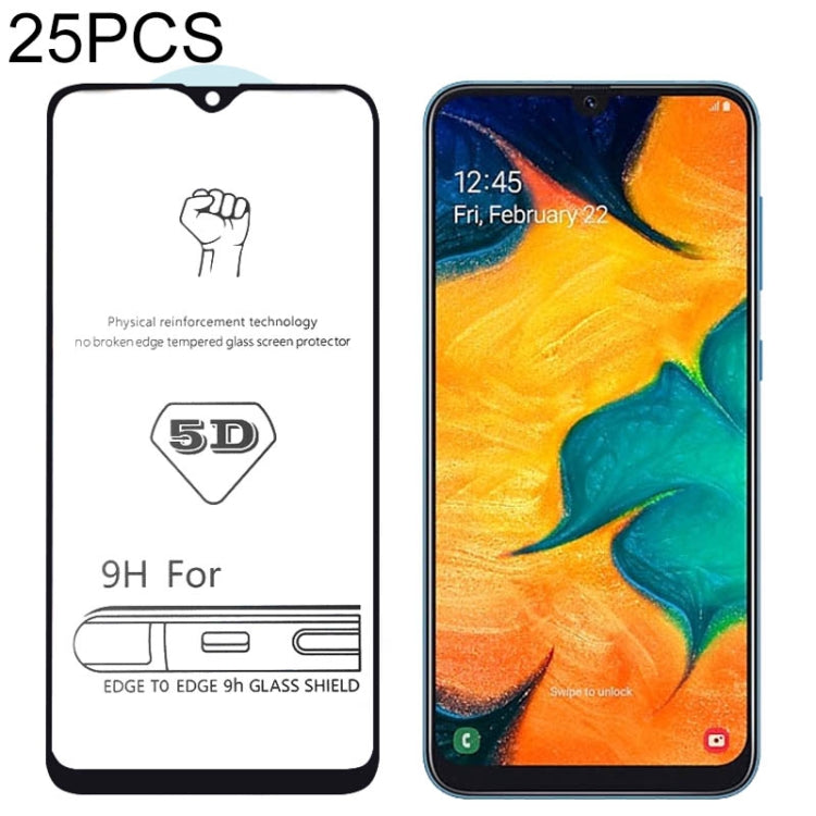 25 PCS 9H 5D Full Glue Full Screen Tempered Glass Film for Galaxy A30 / A50 / M30