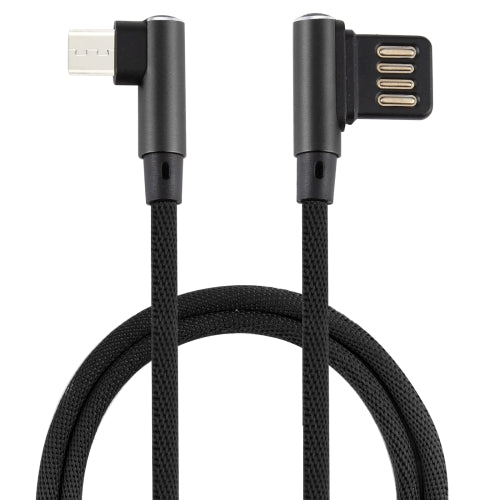 2A USB Elbow to Micro USB Elbow Braided Data Cable, Cable Length: 1m (Black)