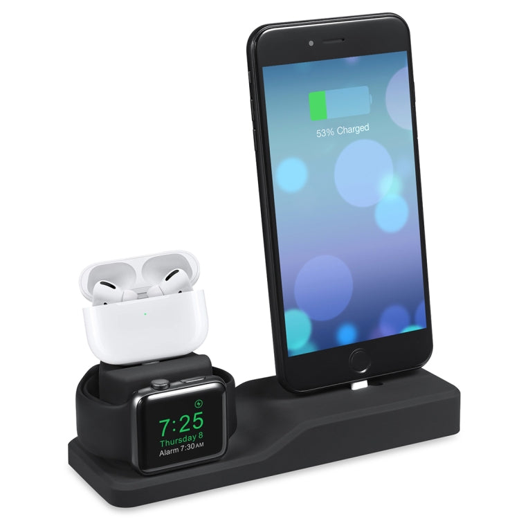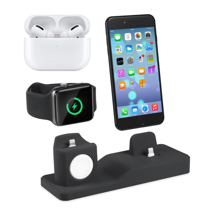 3 in 1 Silicone Charging Dock for AirPods Pro & Apple Watch & iPhone, with Bracket Funtcion(Black)