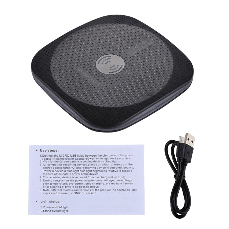 5V 1A Universal Square Fast Qi Standard Wireless Charger with Indicator Light, For iPhone X & 8 & 8 Plus, Galaxy, Huawei, Xiaomi, LG, Nokia, Google and other QI Standard Smartphones(Black)