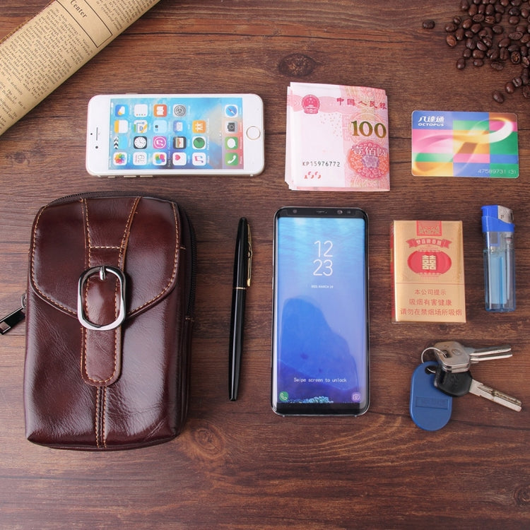 6.3 inch and Below Universal Crazy Horse Texture Genuine Leather Men Vertical Style Case Waist Bag with Belt Hole for Sony, Huawei, Meizu, Lenovo, ASUS, Cubot, Oneplus, Xiaomi, Ulefone, Letv, DOOGEE, Vkworld, and other Smartphones(Brown)