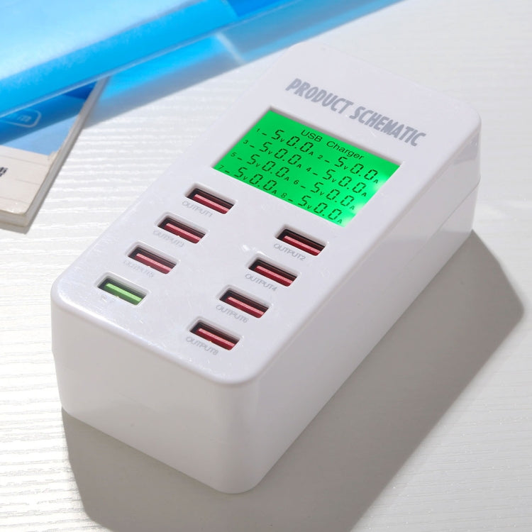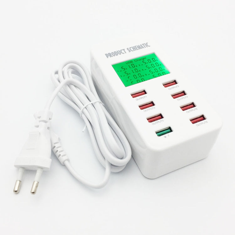 A8 40W 8 Ports USB + QC3.0 Smart Charging Station with Digital Display AC100-240V, EU Plug
