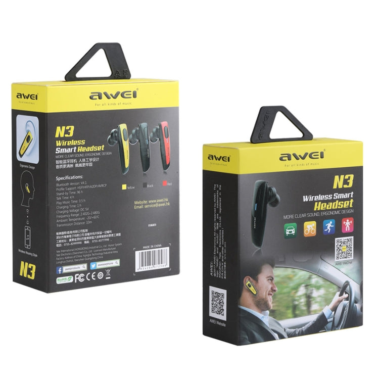 AWEI N3 Business Style Wireless Smart Headset Bluetooth Stereo In-ear Earphone with Mic, For iPhone, Samsung, Huawei, Xiaomi, HTC and Other Smartphones (Grey)