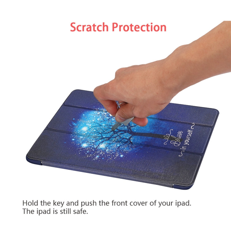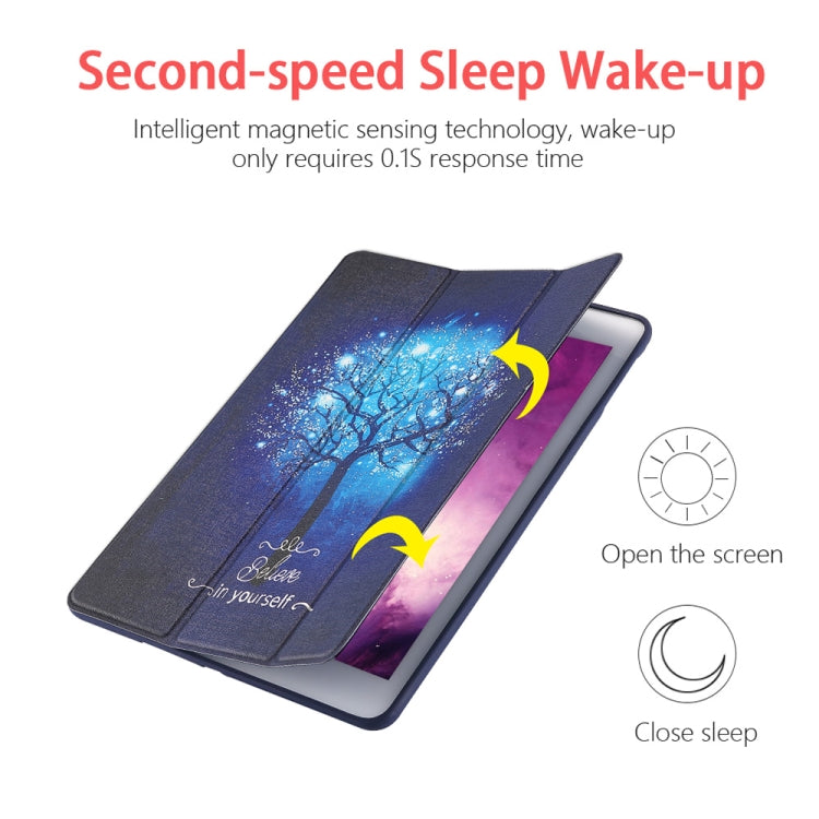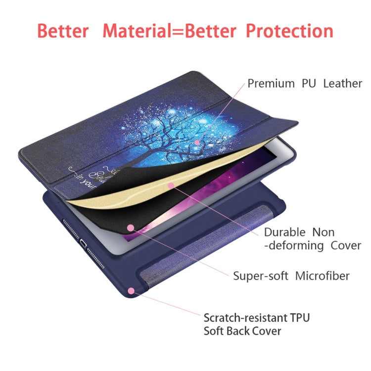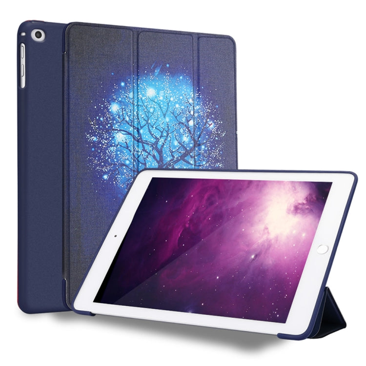 Blue Tree Pattern Horizontal Flip PU Leather Case for iPad 9.7 (2018) & (2017) / Air 2 / Air, with Three-folding Holder & Honeycomb TPU Cover