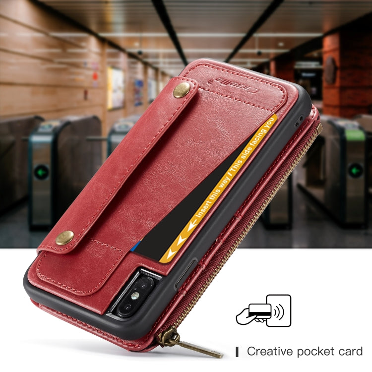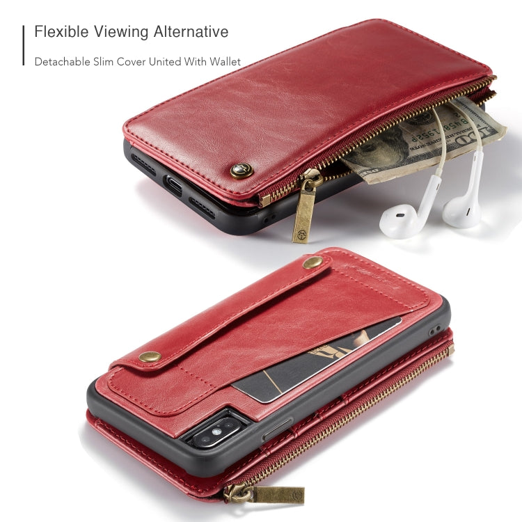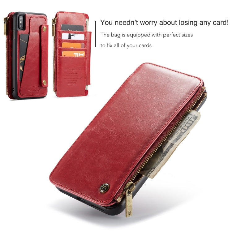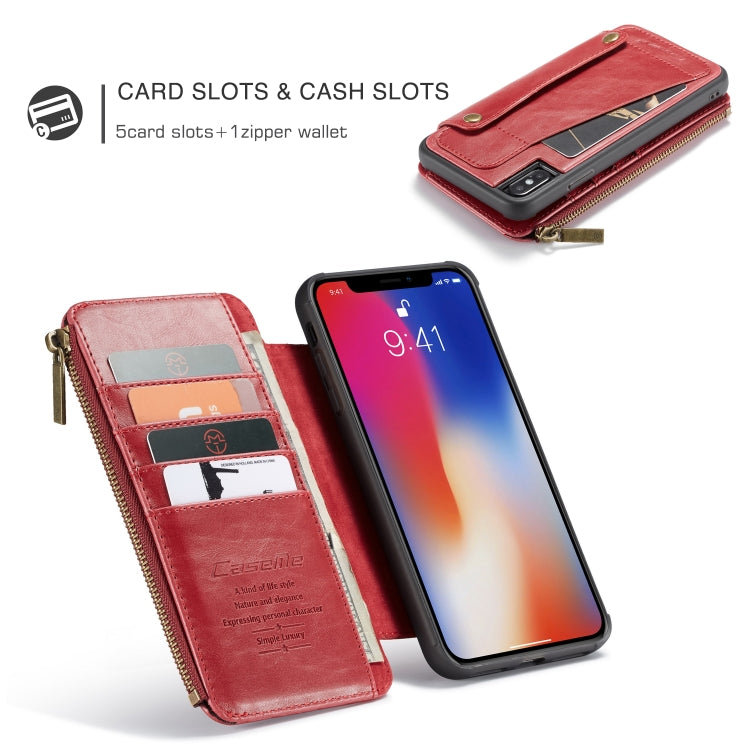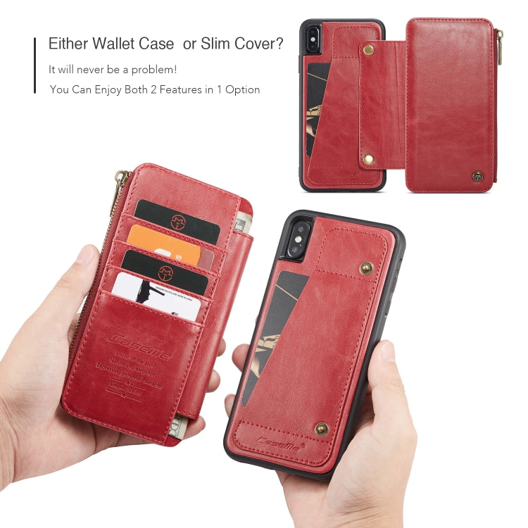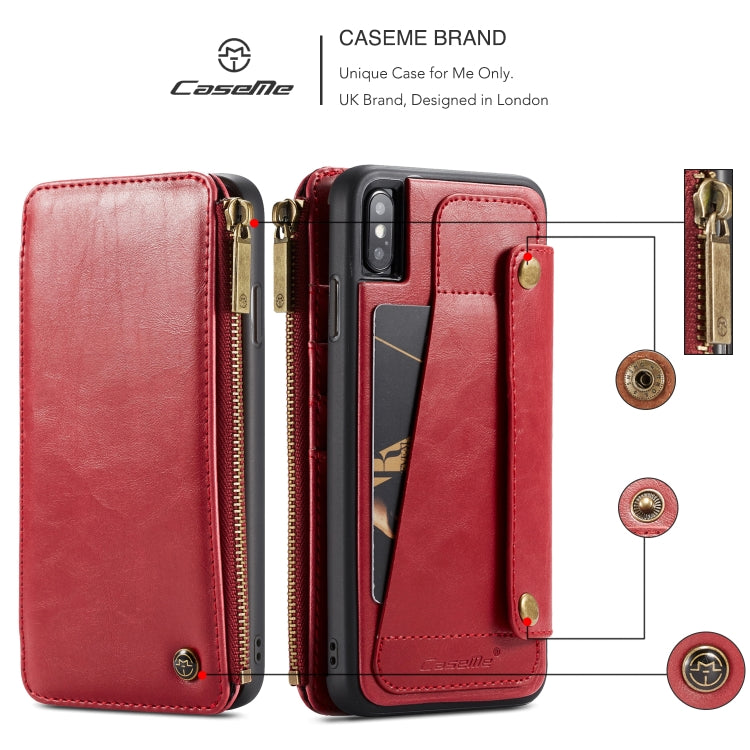CaseMe-011 Detachable Multifunctional Horizontal Flip Leather Case for iPhone XS Max, with Card Slot & Holder & Zipper Wallet & Photo Frame (Red)