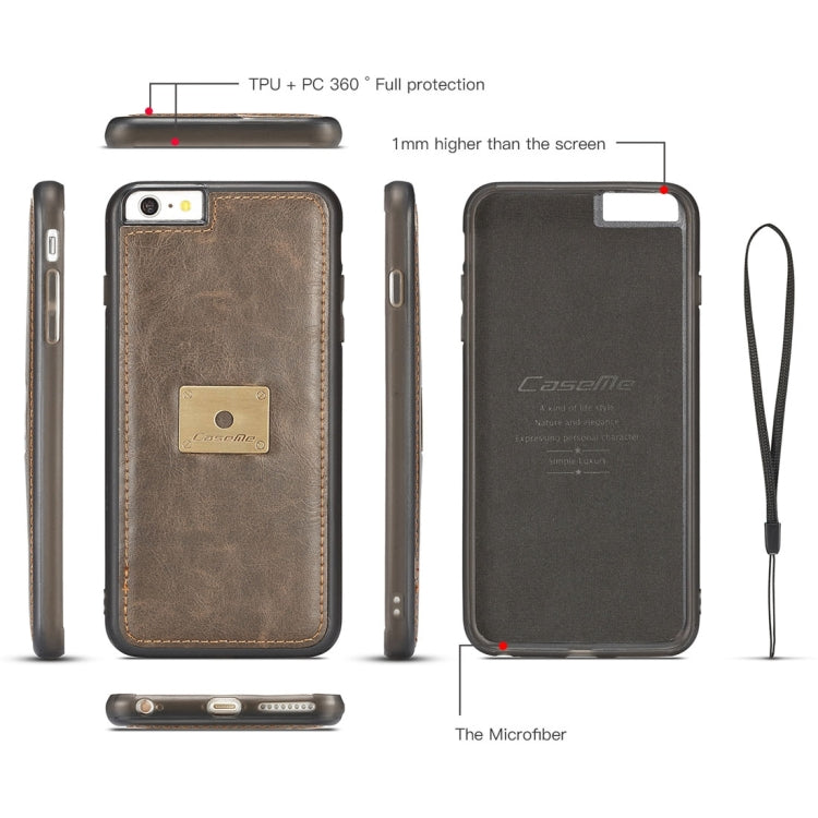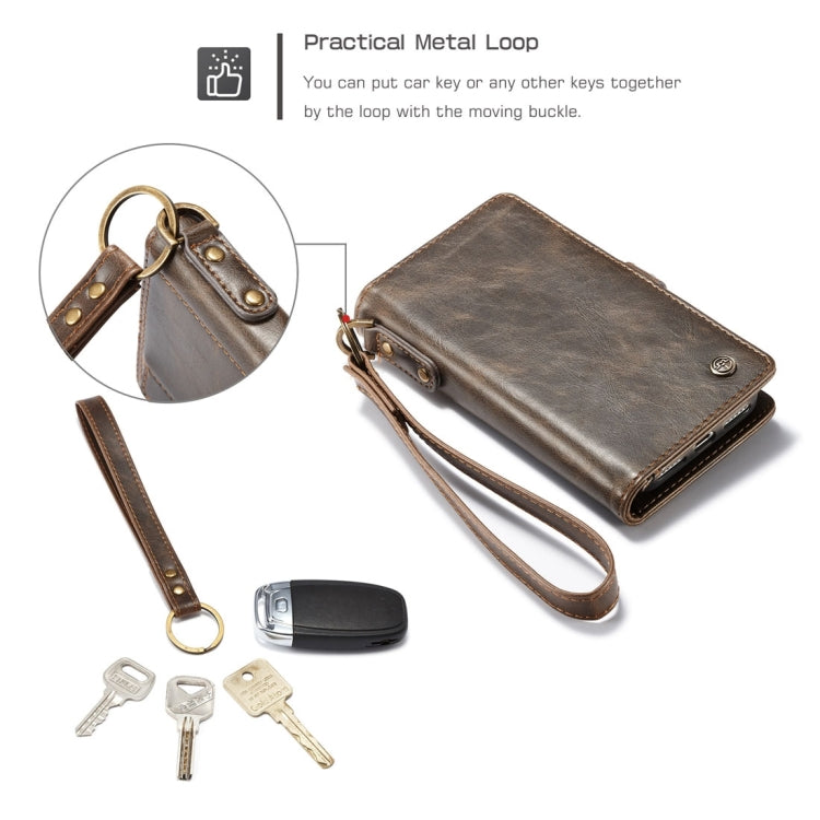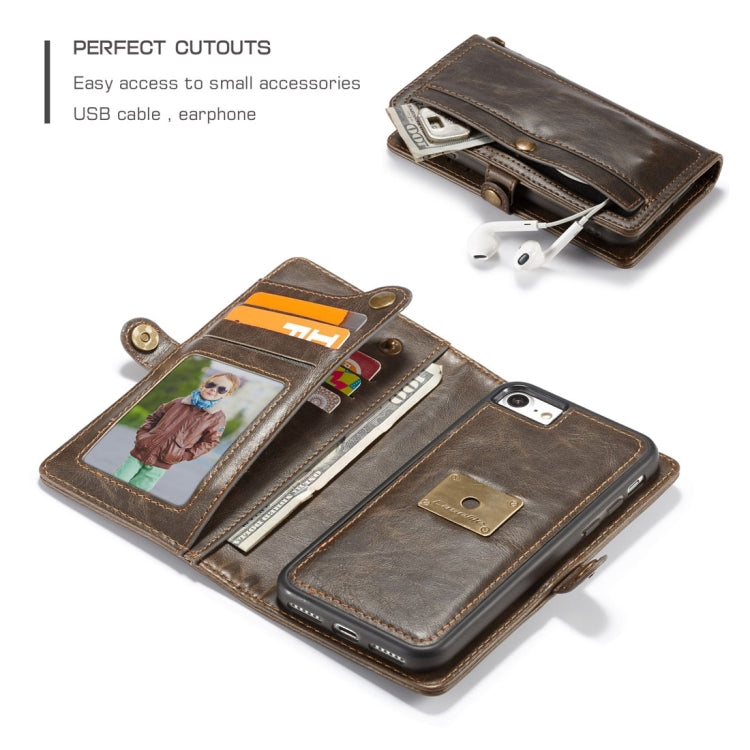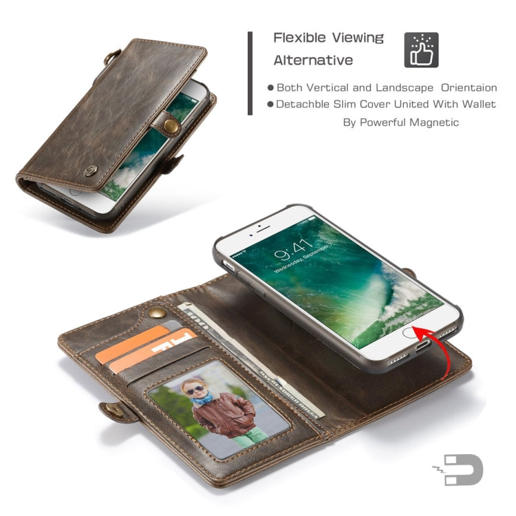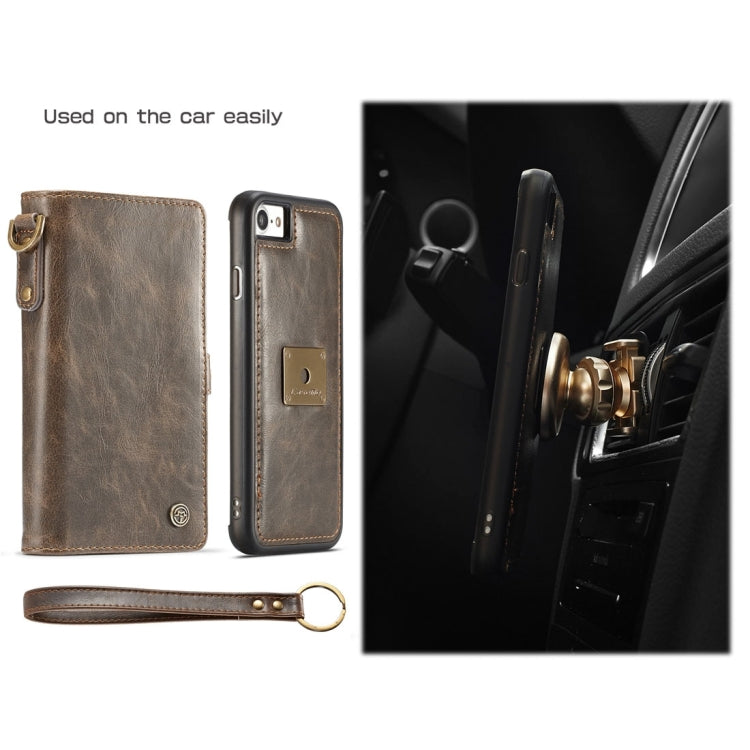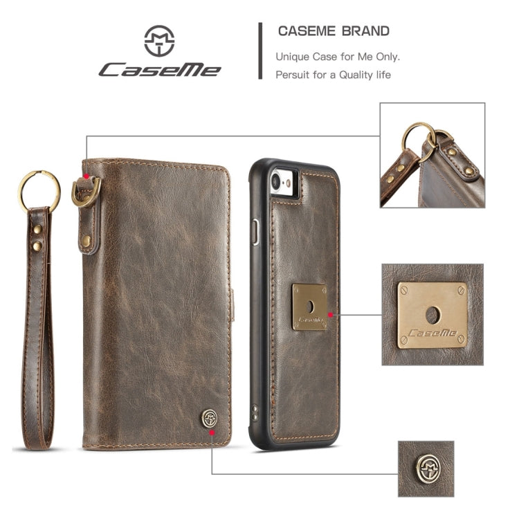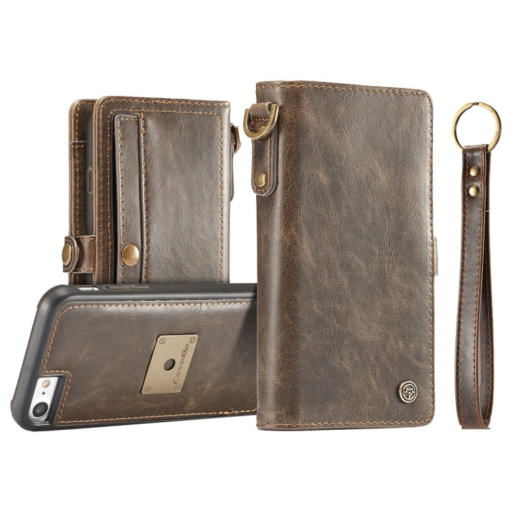 CaseMe for iPhone 8 & 7 TPU + PC Detachable Magnetic Horizontal Flip Leather Case with Card Slots & Wallet & Photo Frame & Storage Cutouts & Metal Loop Lanyard(Coffee)