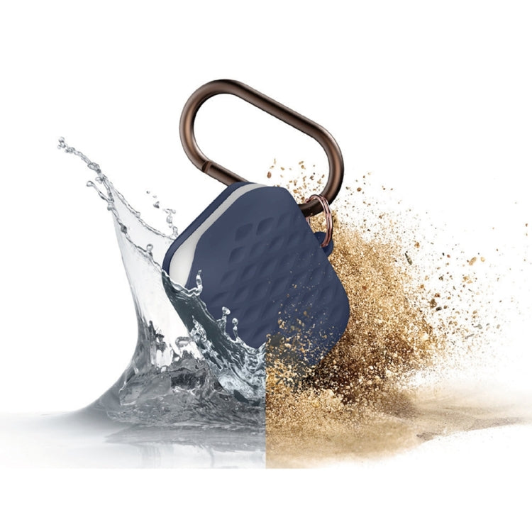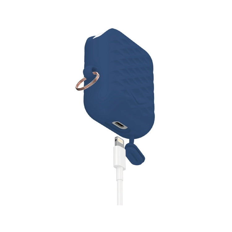 Diamond Square Plaid Waterproof Carabiner Hook Silicone Case For Apple AirPods(Dark Blue)