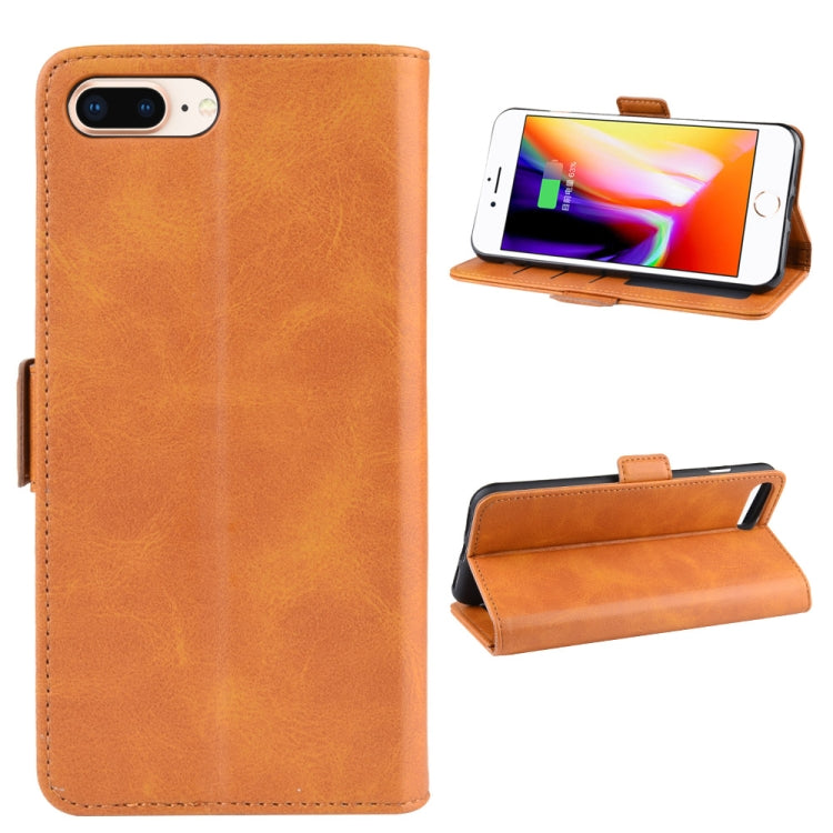Dual-side Magnetic Buckle Horizontal Flip Leather Case for iPhone 8 Plus / 7 Plus, with Holder & Card Slots & Wallet & Photo Frame(Yellow)
