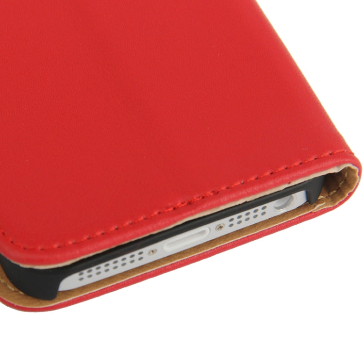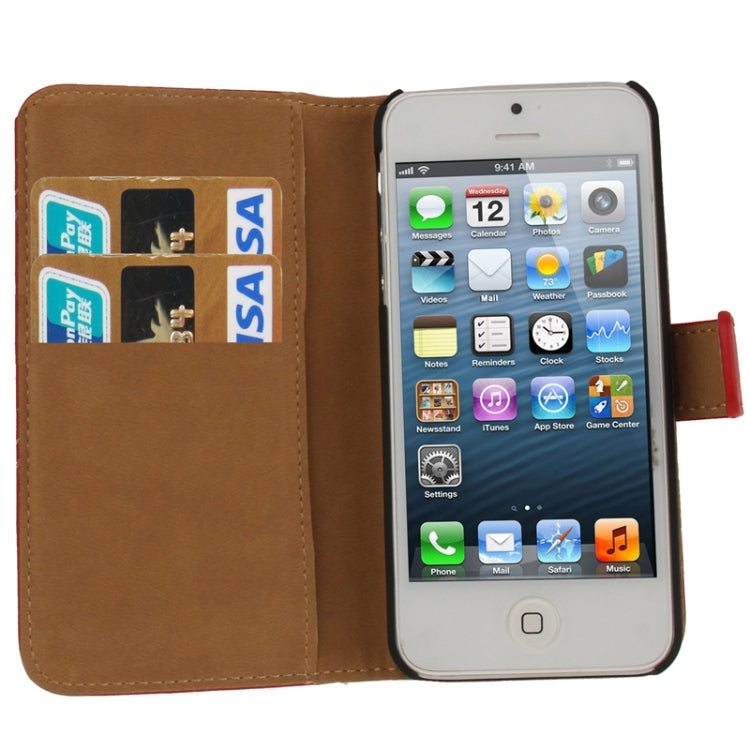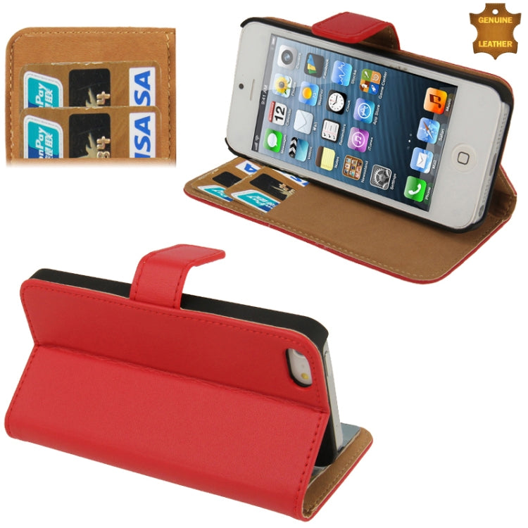 Economic Durable Genuine Leather Case with Credit Card Slots & Holder for iPhone 5 & 5s & SE & SE (Red)