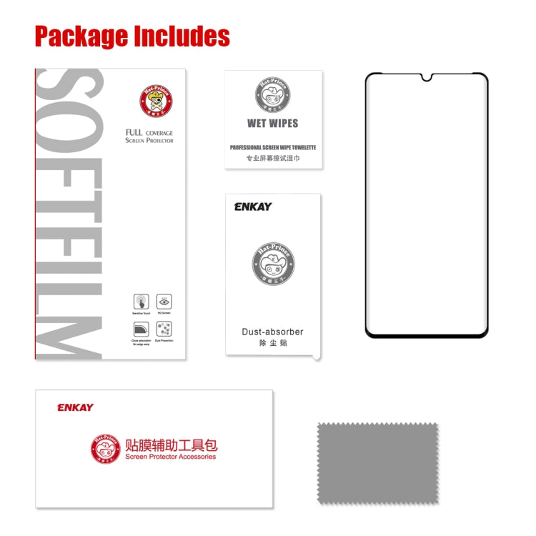 ENKAY Hat-Prince 3D Full Screen Electroplating PET Curved Heat Bending HD Screen Protector Black for Huawei P30 Pro