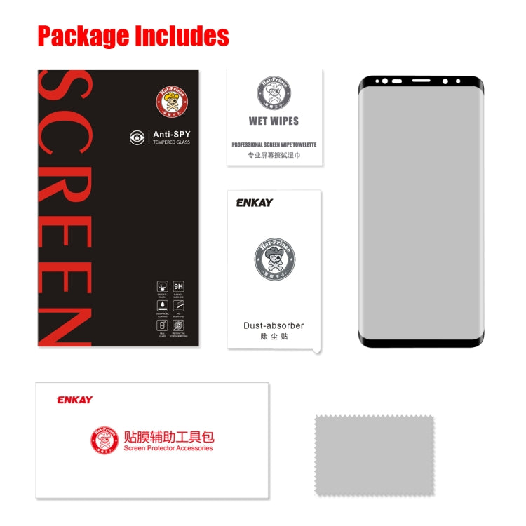 ENKAY Hat-Prince for Galaxy S9+ 0.26mm 9H Surface Hardness 3D Privacy Anti-glare Full Screen Tempered Glass Protective Film