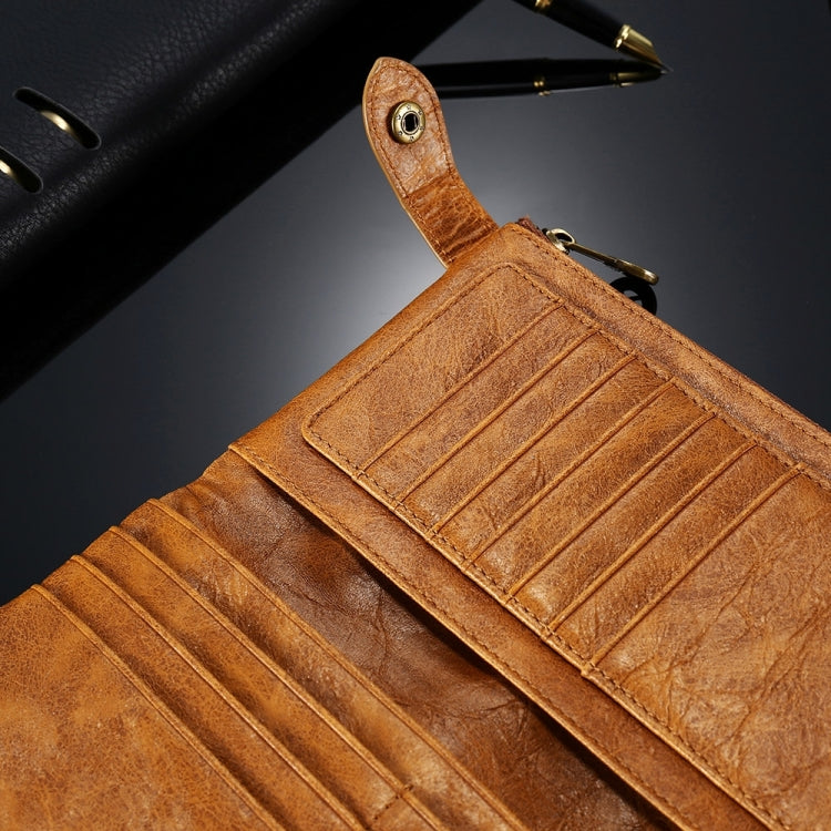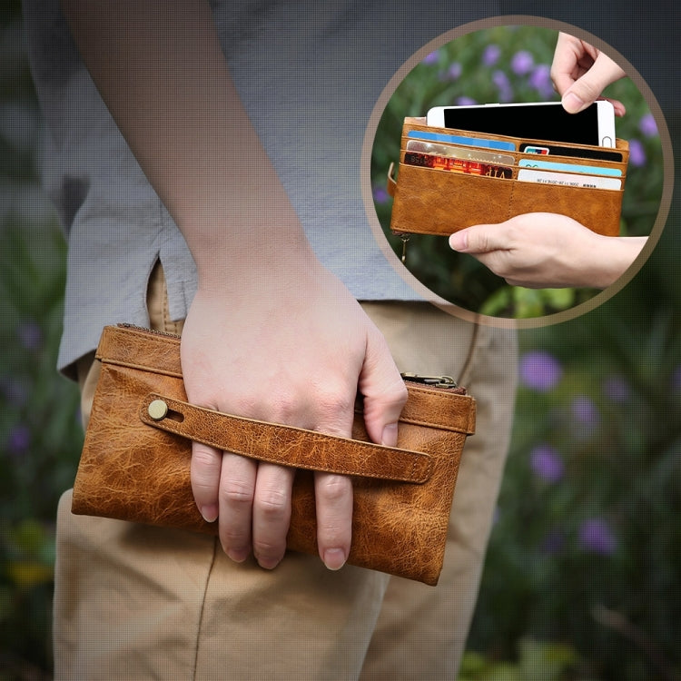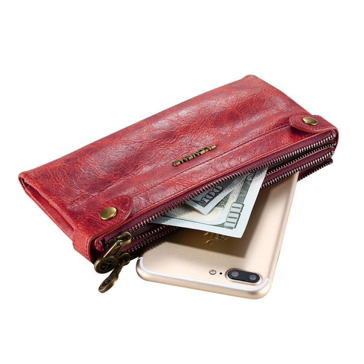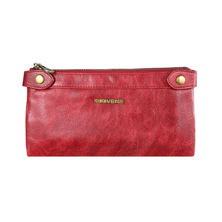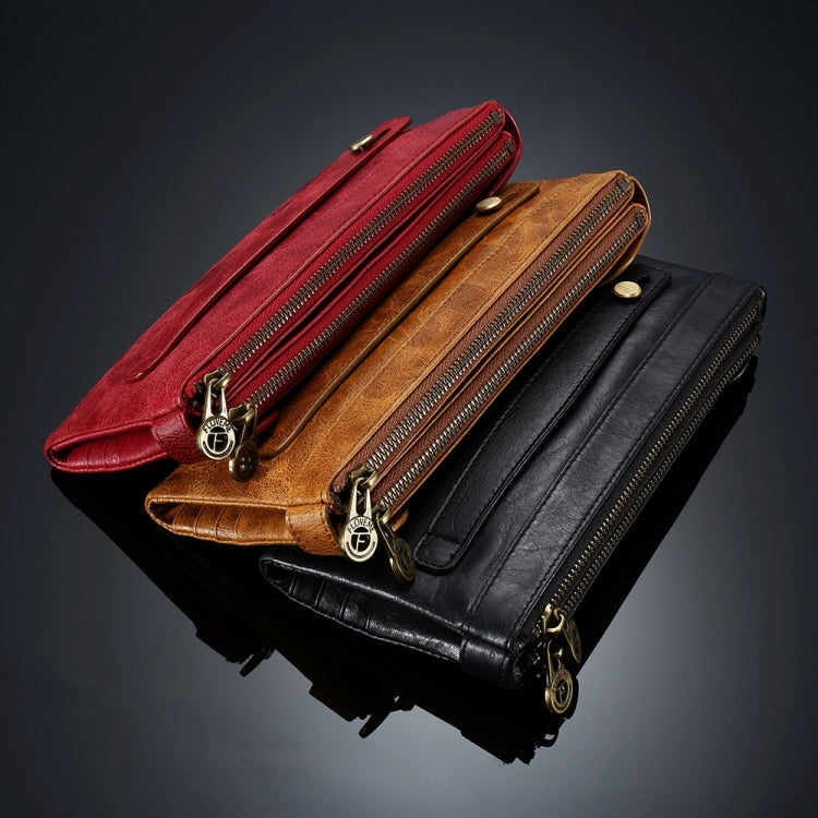 FLOVEME Universal Double Zipper Genuine Leather Horizontal Flip Protective Case Pouch with Card Slots & Wallet For iPhone / Samsung / Huawei / Xiaomi / 5.5 inch Below Smartphones(Red)