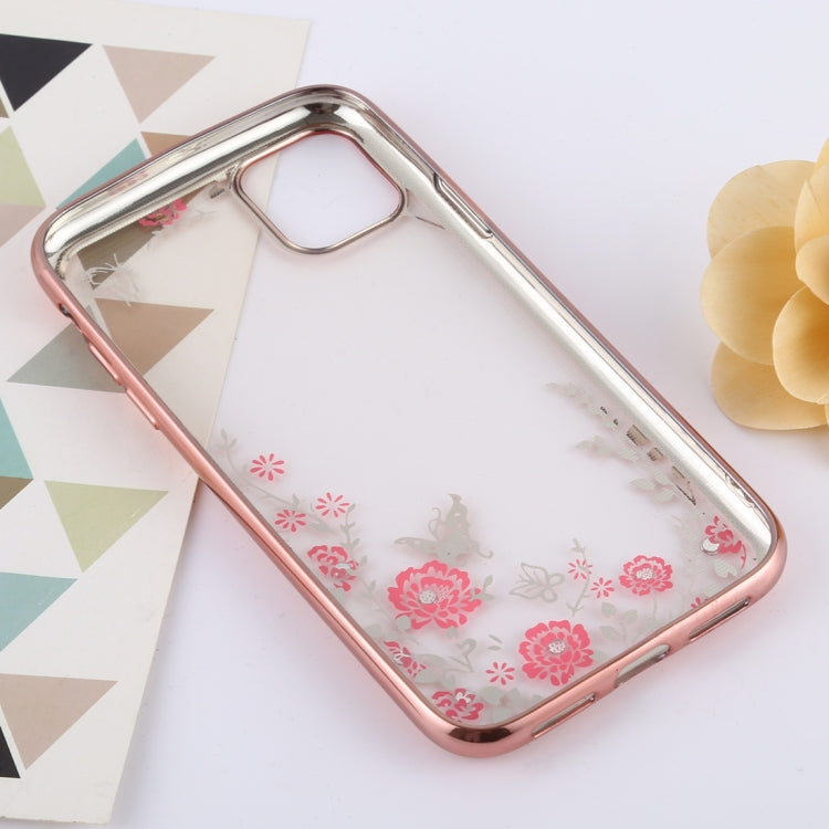 Flowers Patterns Electroplating Soft TPU Protective Cover Case for iPhone 11 Pro Max (Rose Gold)