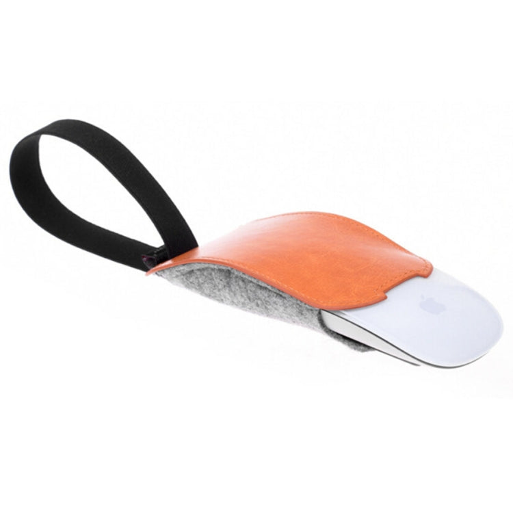 For Apple Magic Mouse 2 European Style Portable Dustproof Storage Bag PU Leather Wool Felt Protective Bag(Orange)