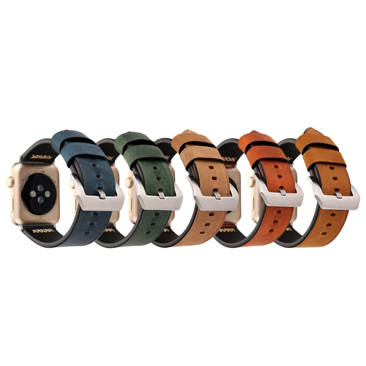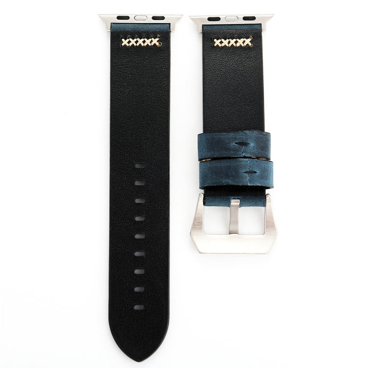 For Apple Watch Series 3 & 2 & 1 38mm Retro XX Line Pattern Genuine Leather Wrist Watch Band (Blue)