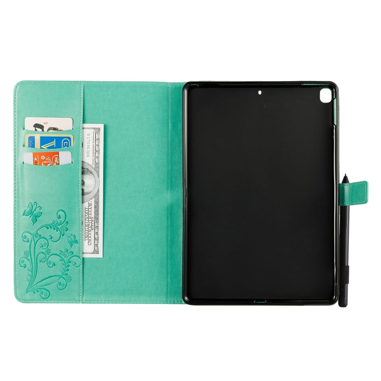 For iPad 10.2 / Pro 10.5 / Air 2019 Pressed Printing Butterfly Pattern Horizontal Flip PU Leather Case with Holder & Card Slots & Wallet & Pen Slot(Green)