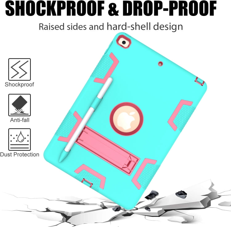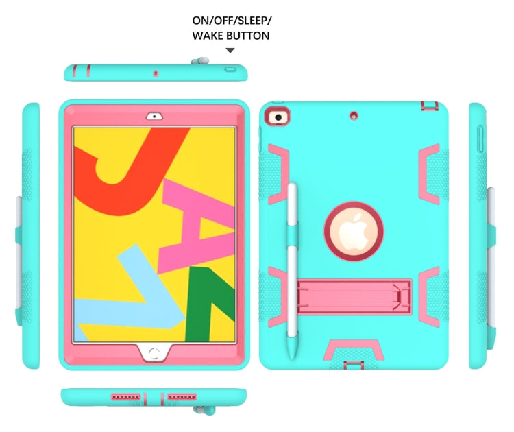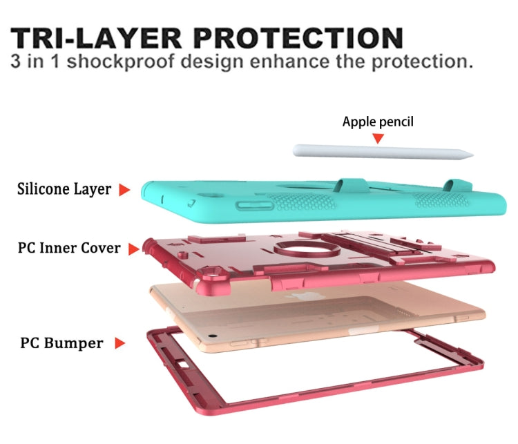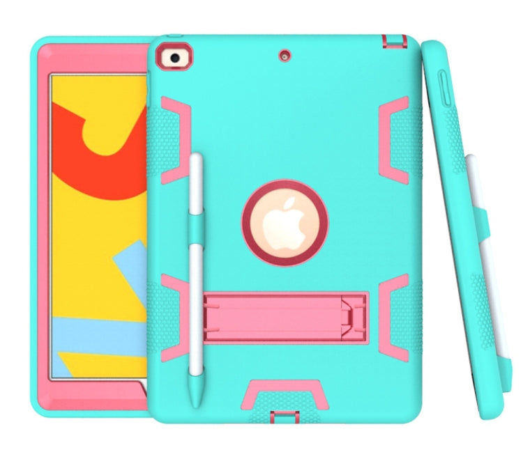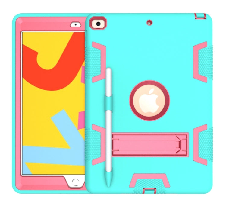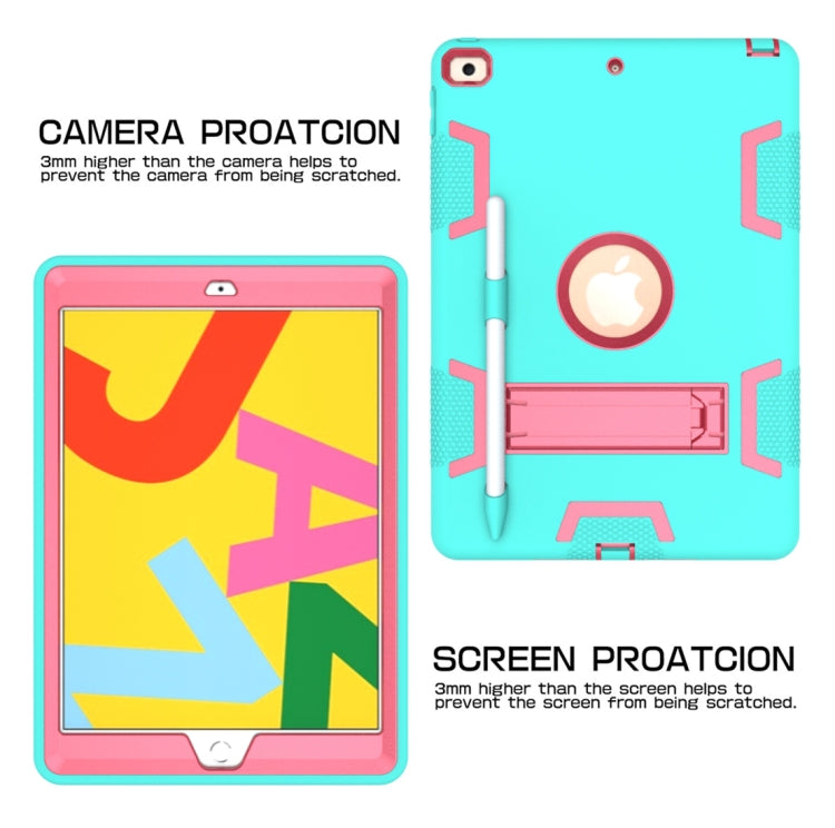 For iPad 10.2 Shockproof PC + Silicone Protective Case with Holder & Pen Slot(Mint Green + Rose Red)