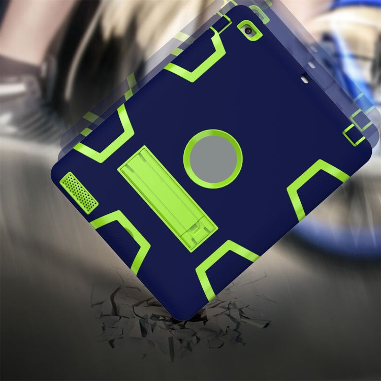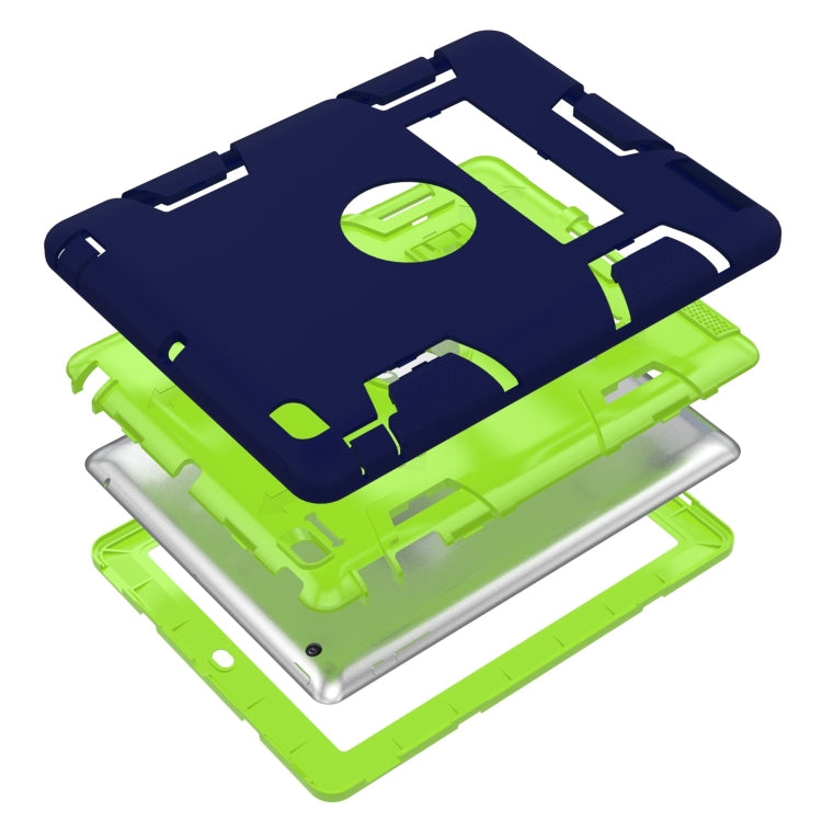 For iPad 4 / 3 / 2 / 1 Shockproof PC + Silicone Protective Case?with Holder(Navy Blue Yellow Green)