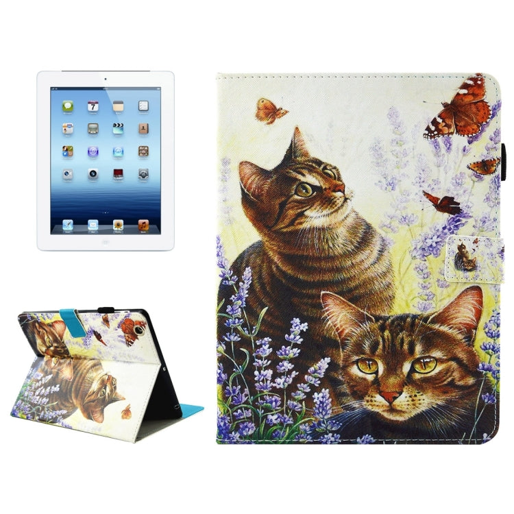 For iPad 4 / 3 / 2 Cats and Butterflies Pattern Horizontal Flip Leather Case with Holder & Wallet & Card Slots & Sleep / Wake-up Function & Pen Slot