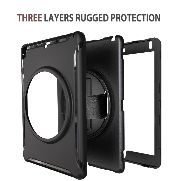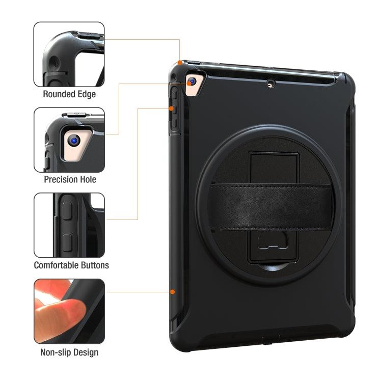 For iPad 9.7 inch (2017) 360 Degree Rotation PC+TPU Protective Cover with Holder & Hand Strap(Black)
