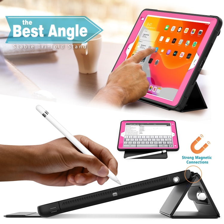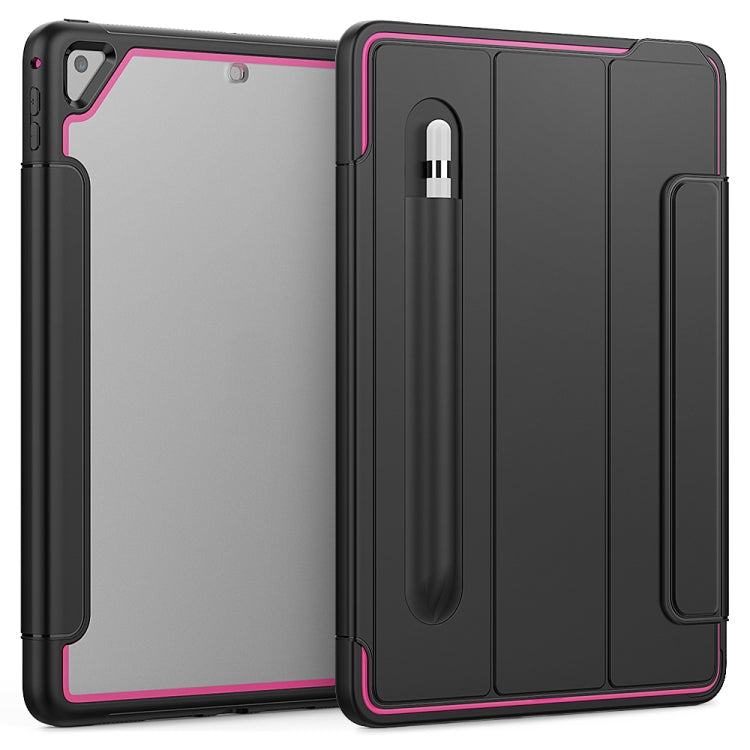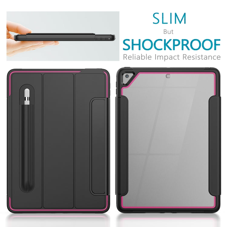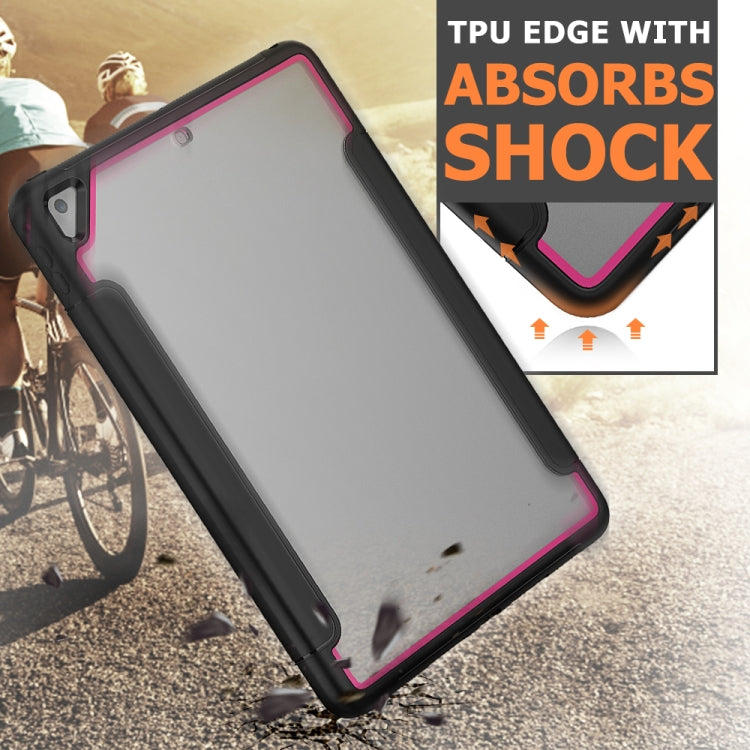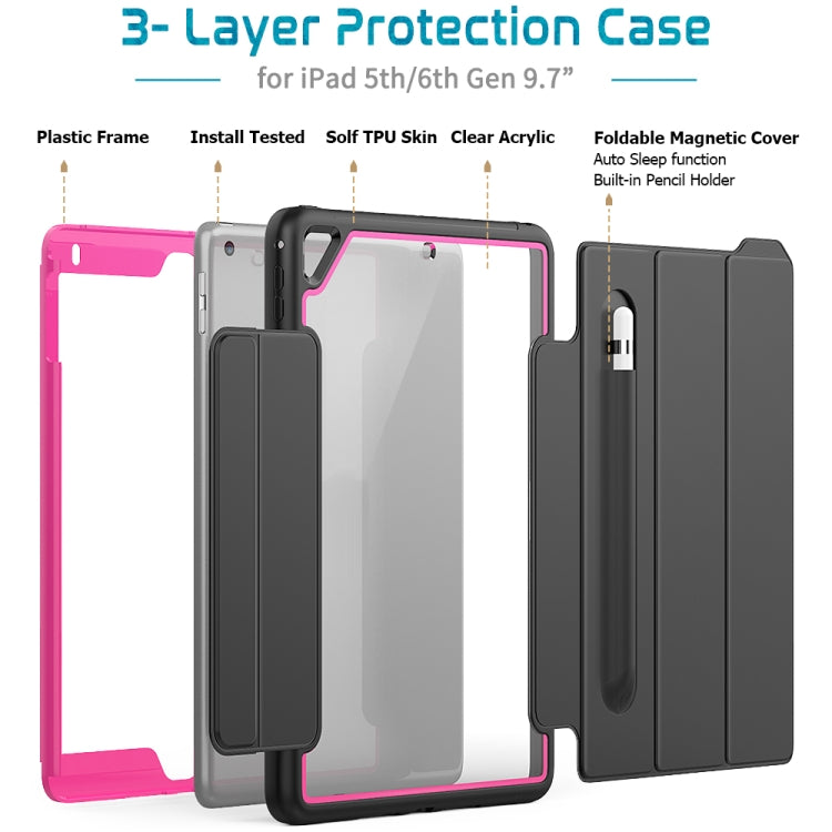 For iPad Air 2 / Air / 9.7 (2018 & 2017) Acrylic + TPU Horizontal Flip Smart Leather Case with Three-folding Holder & Pen Slot & Wake-up / Sleep Function(Rose Red+Black)