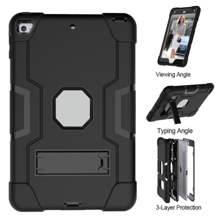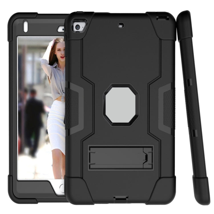 For iPad mini 3/2/1 Silicone + PC Protective Case with Stand(Black + Grey)