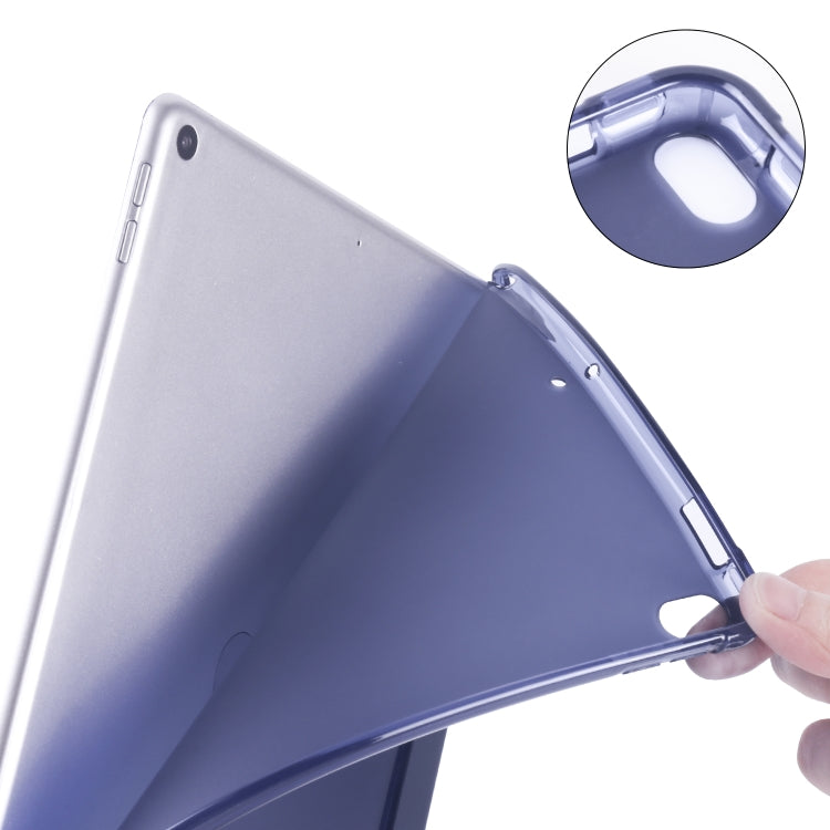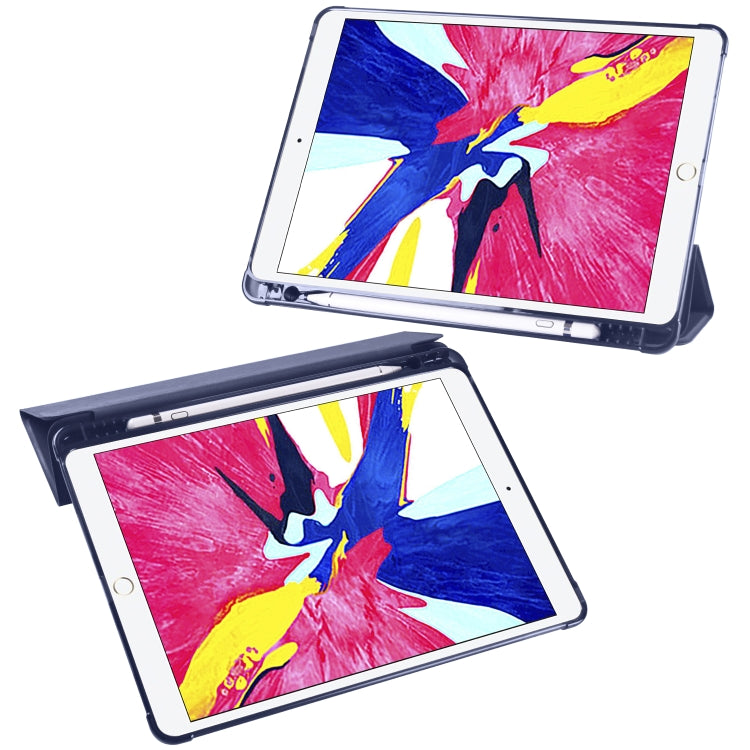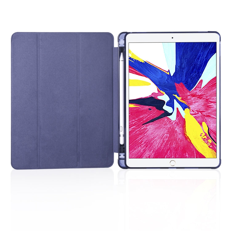For iPad Pro 10.5 inch / Air 3 10.5 inch 3-folding Horizontal Flip PU Leather + Shockproof TPU Case with Holder & Pen Slot(Dark Blue)
