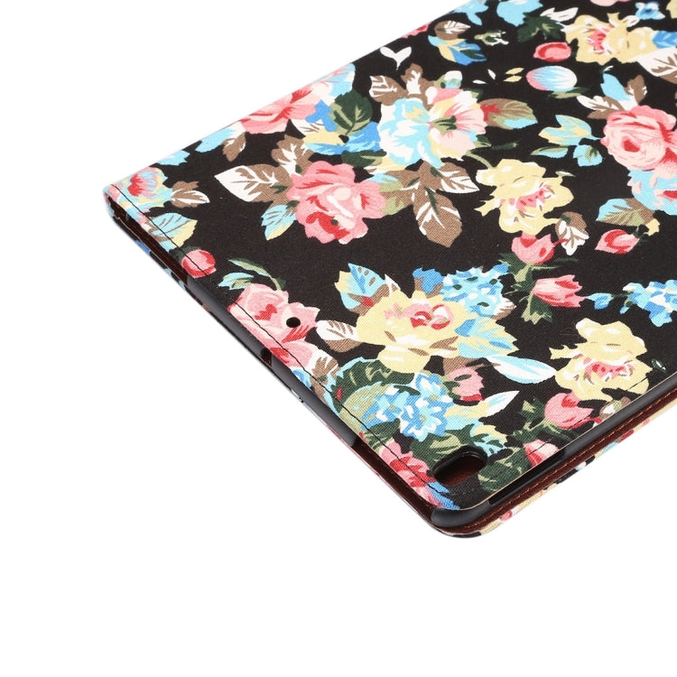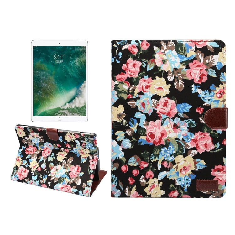 For iPad Pro 10.5 inch Flower Pattern Cloth Surface Horizontal Flip Leather Protective Case with Holder & Card Slots & Wallet & Sleep(Black)