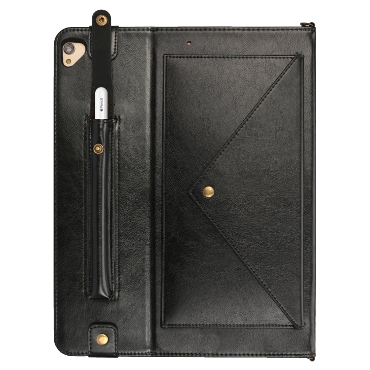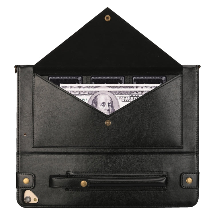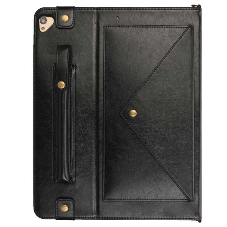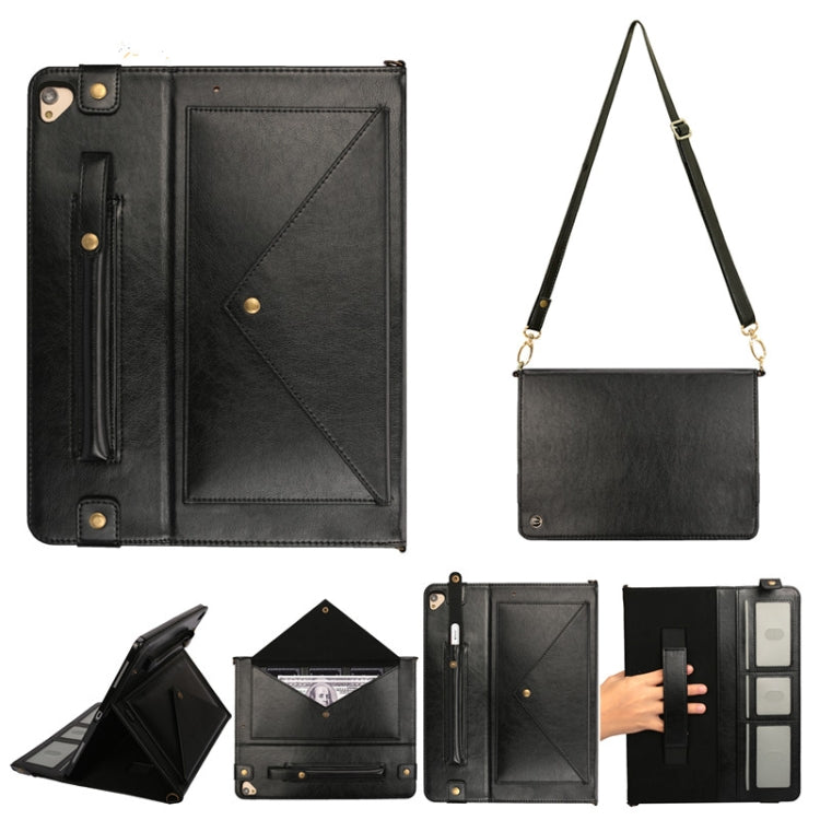 For iPad Pro 12.9 inch (2017) Envelope Horizontal Flip PU Leather Case with Card Slots & Pen Slots & Holder & Wallet & Photo Frame & Shoulder Strap(Black)