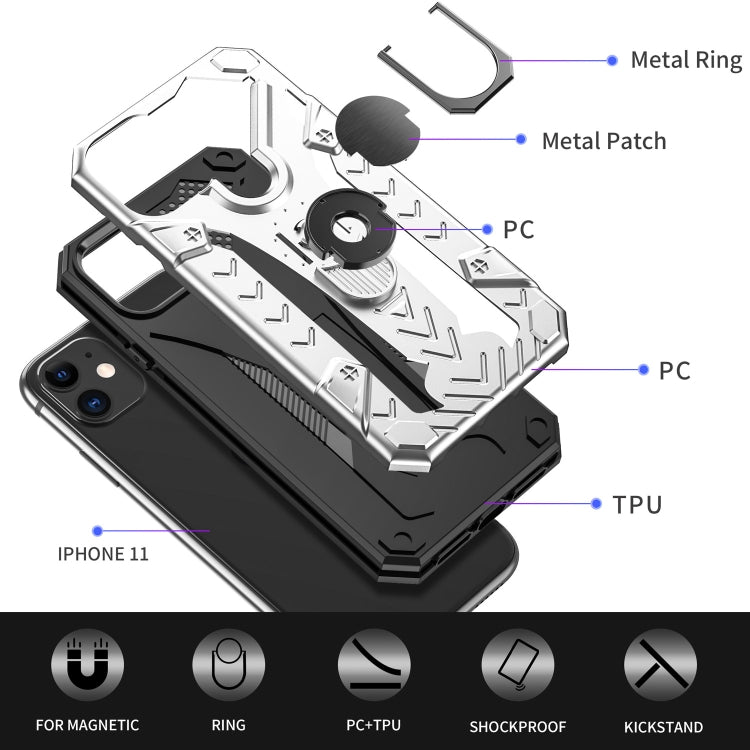 For iPhone 11 Armor Knight Series 2 in 1 PC + TPU Protective Case with Ring Holder(Silver)