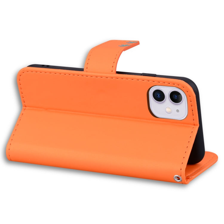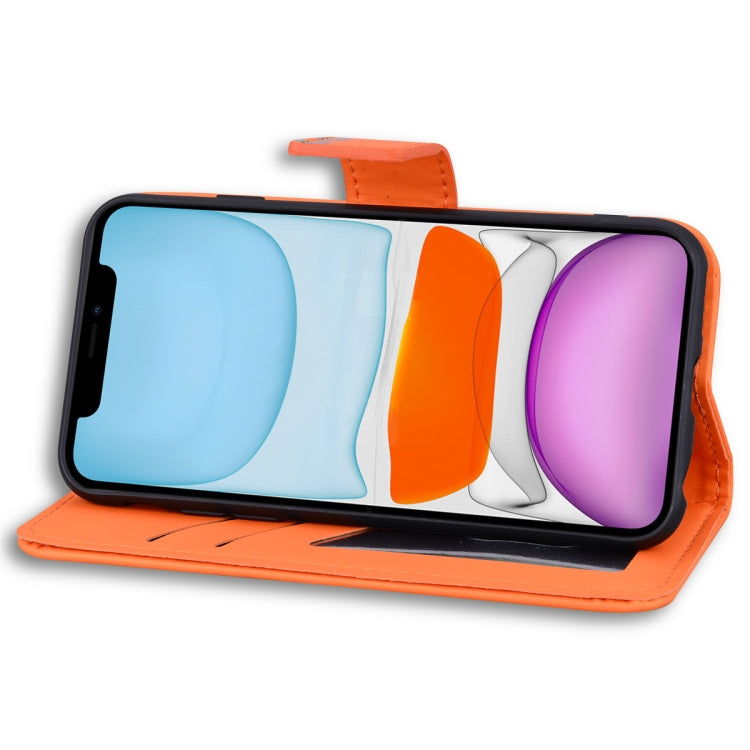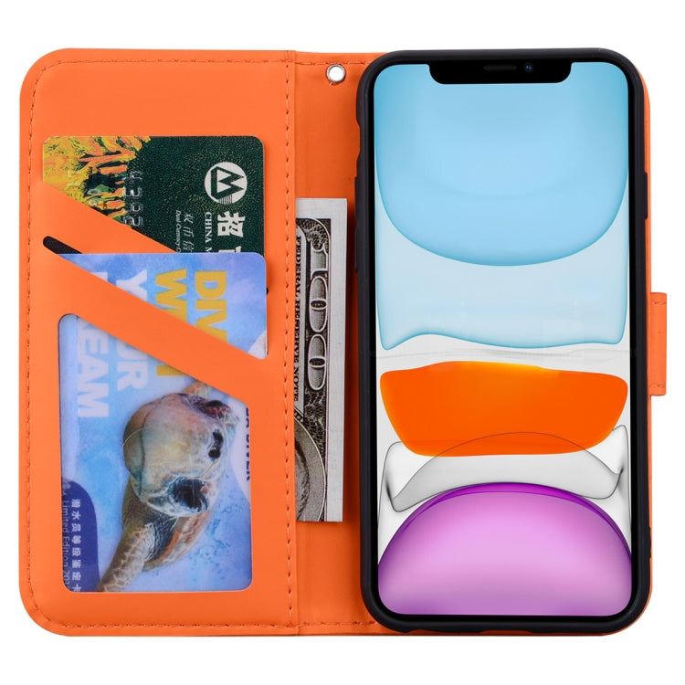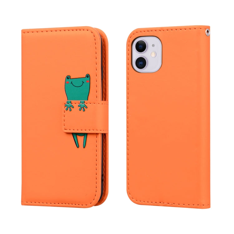 For iPhone 11 Cartoon Animal Horizontal Flip Leather Case with Holder & Card Slots & Wallet(Orange + Frog)
