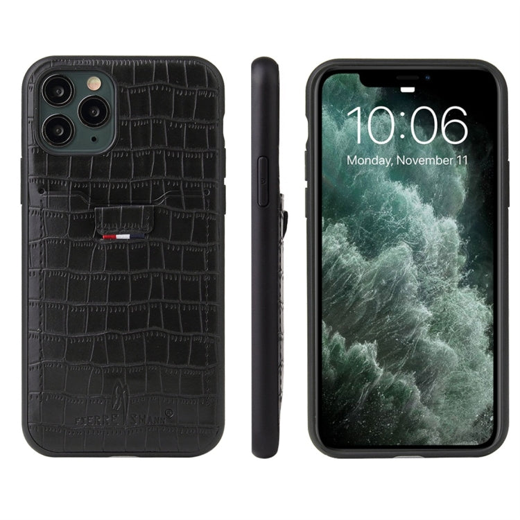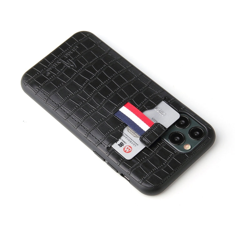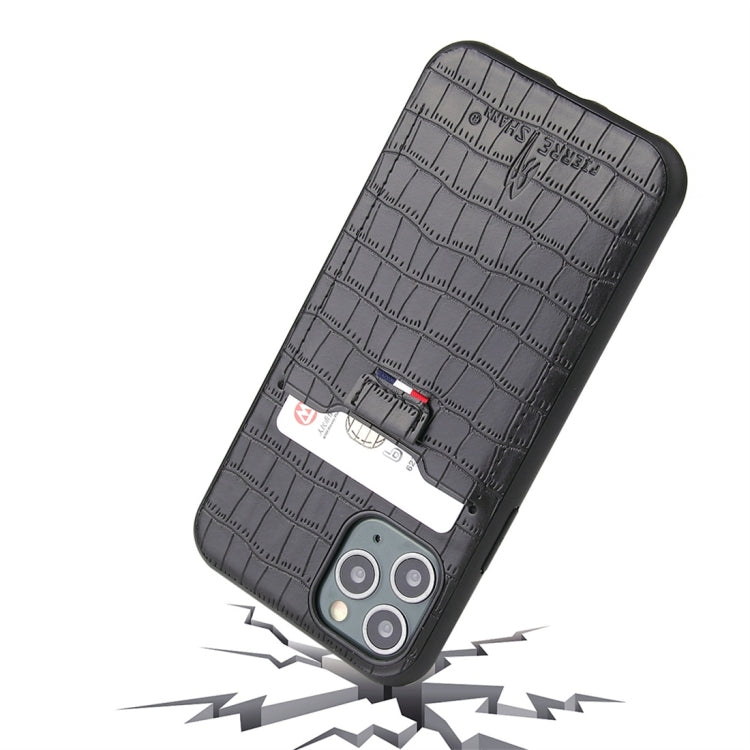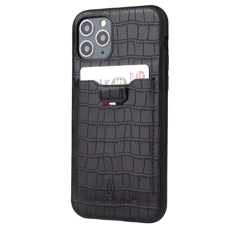 For iPhone 11 Crocodile Texture TPU + Leather Protective Case with Card Slot(Black)