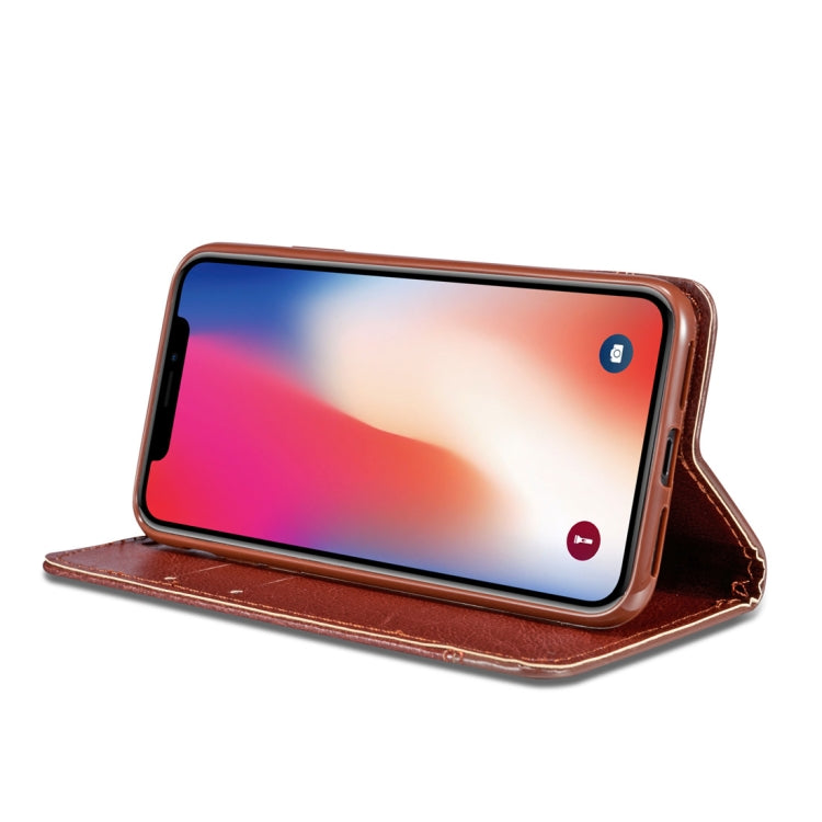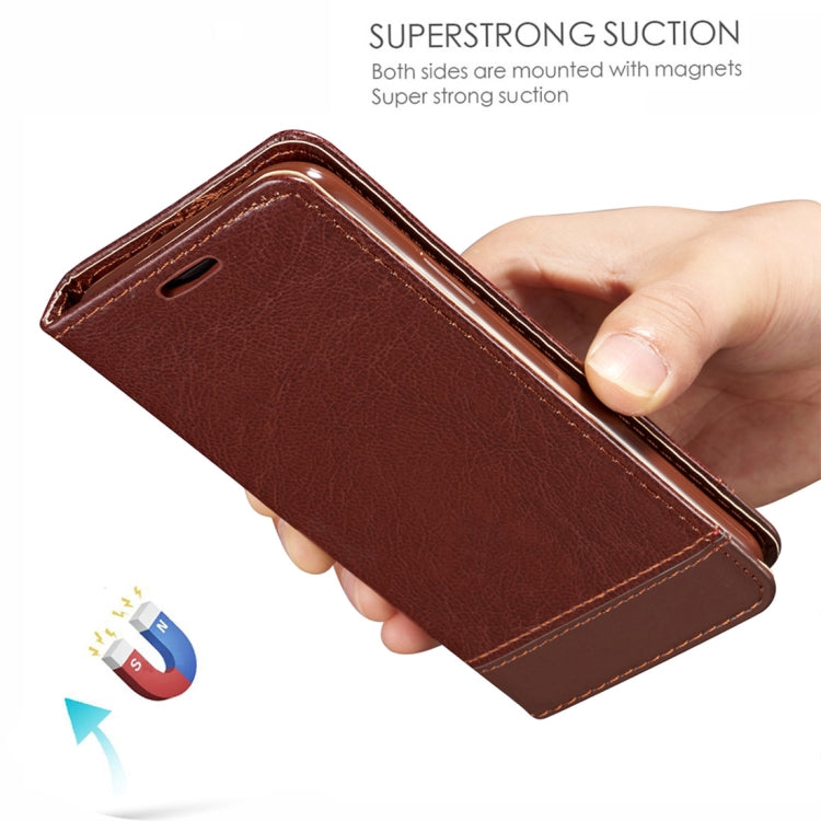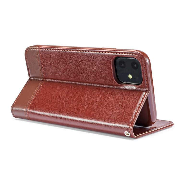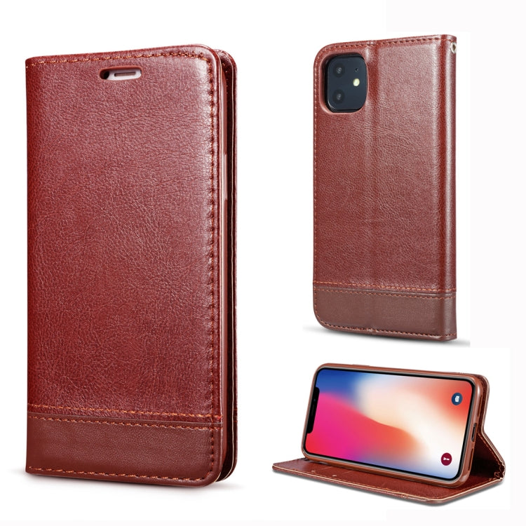 For iPhone 11 Double-sided Absorption Splicing Horizontal Flip Leather Case, with Holder & Card Slots & Lanyard(Brown)