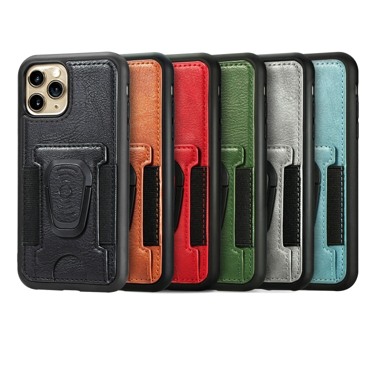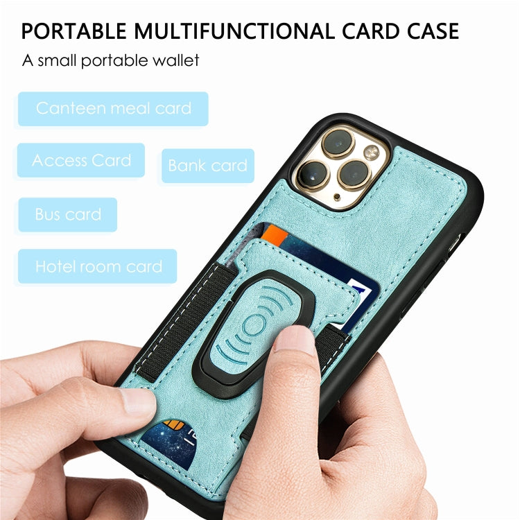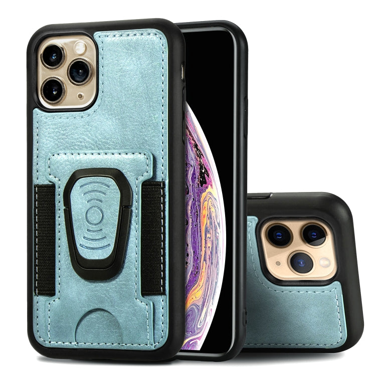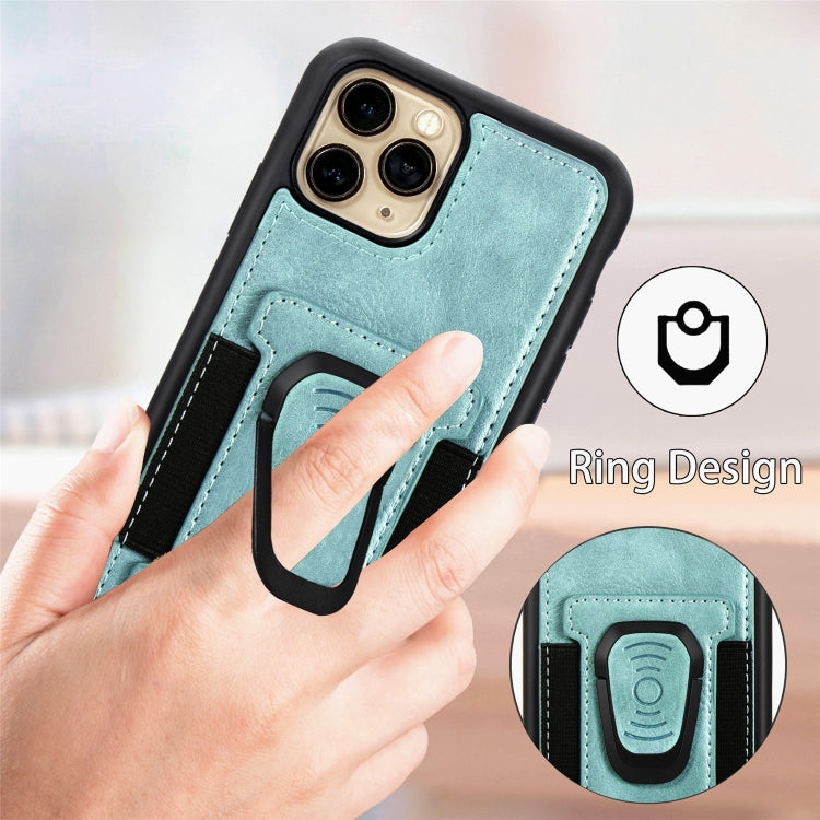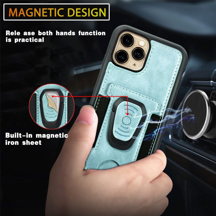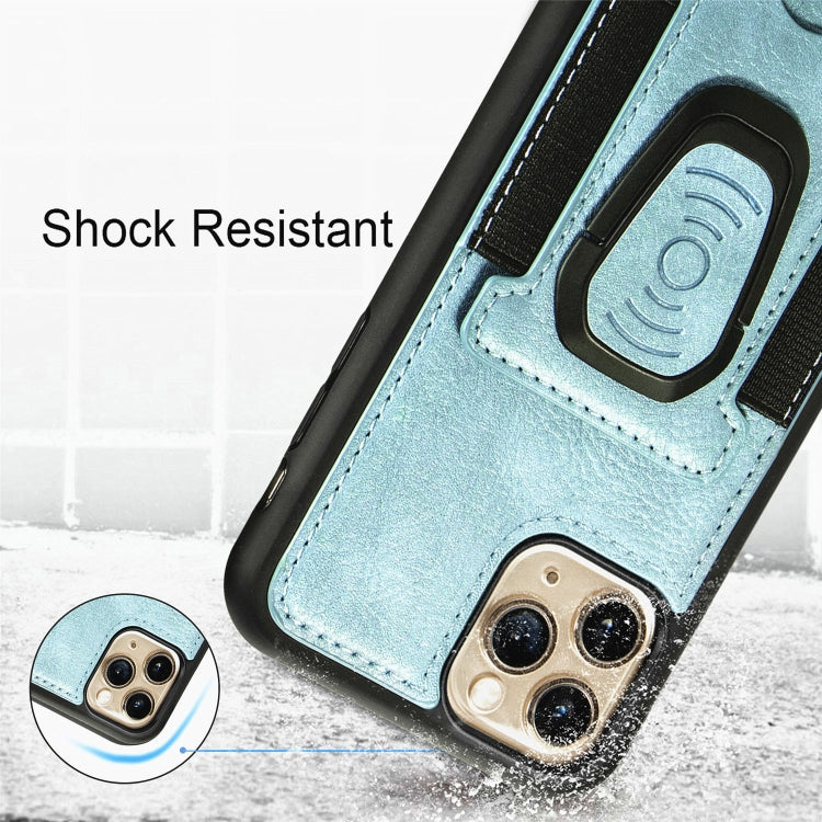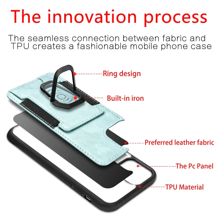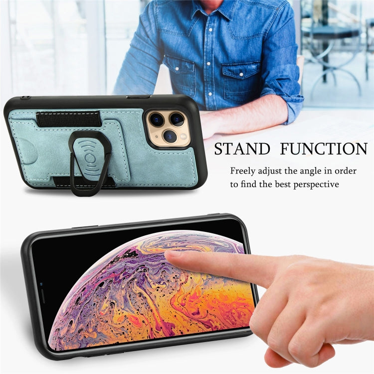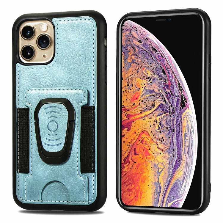 For iPhone 11 Magnetic Shockproof PU + TPU Case with Card Slot & Ring Holder(Blue)