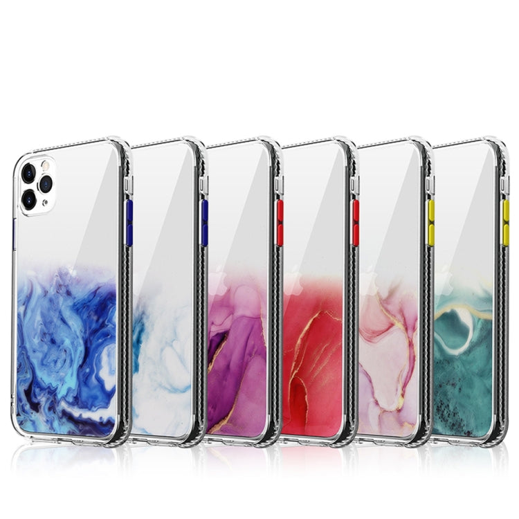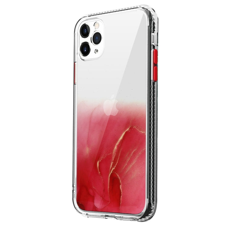 For iPhone 11 Marble Pattern Glittery Powder Shockproof TPU + Acrylic Protective Case with Detachable Buttons(Red)