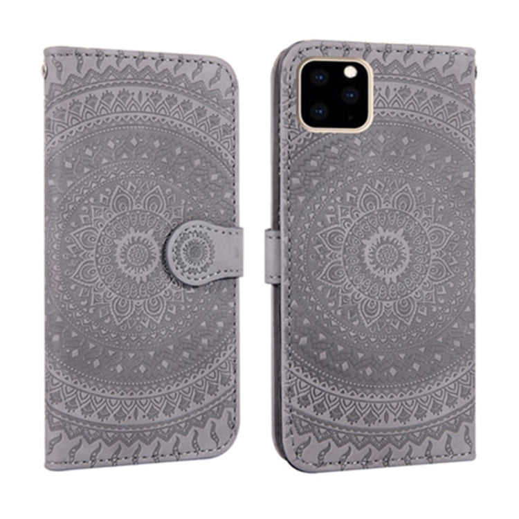 For iPhone 11 Pressed Printing Pattern Horizontal Flip PU Leather Case , with Holder & Card Slots & Wallet & & Lanyard(Gray)