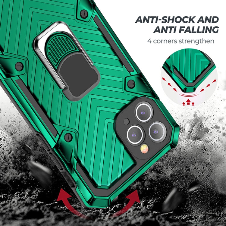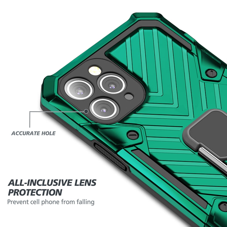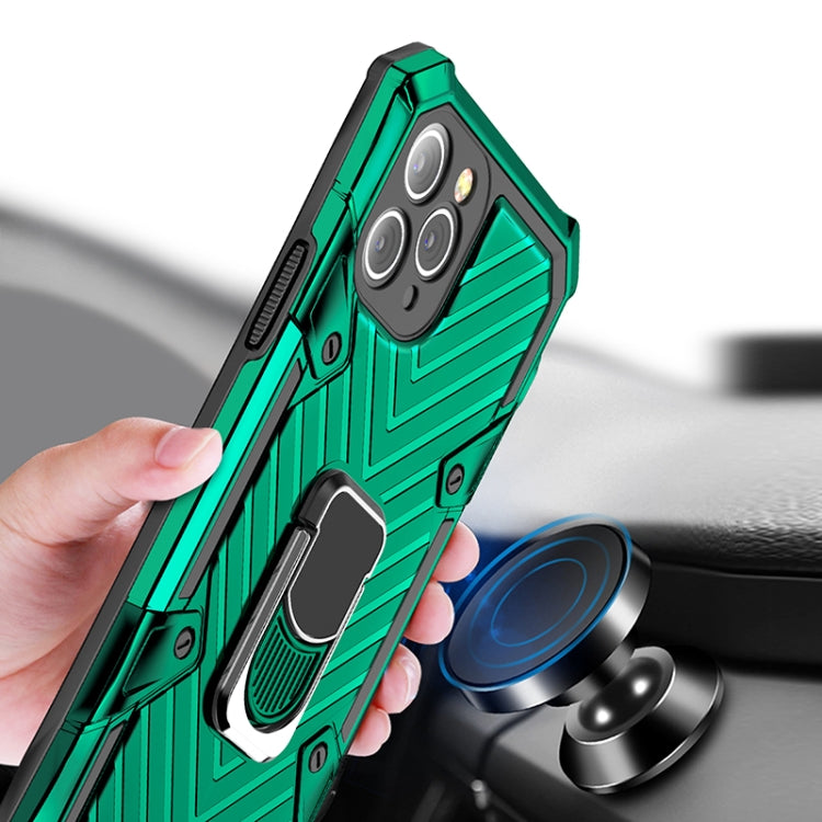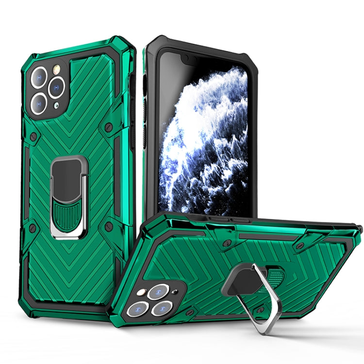 For iPhone 11 Pro Cool Armor PC+TPU Shockproof Case with 360 Degree Rotation Ring Holder(Dark Green)