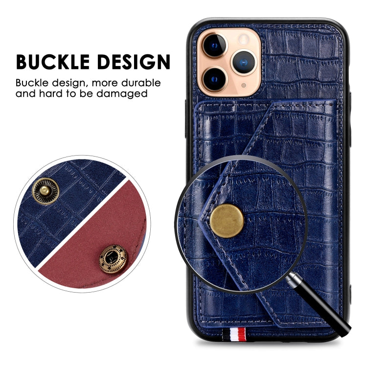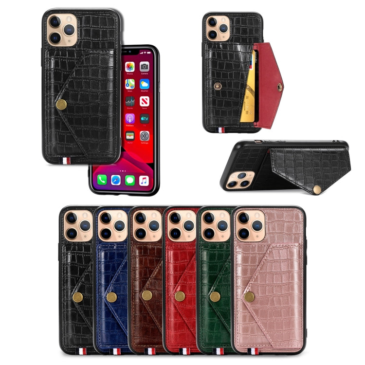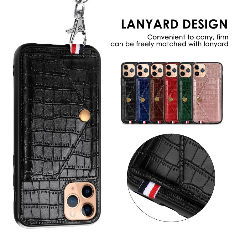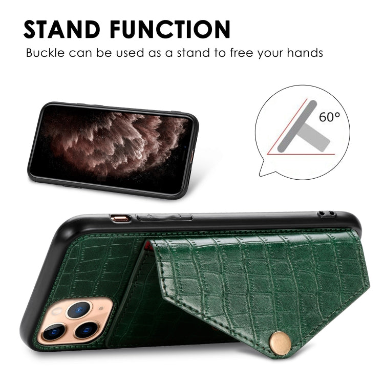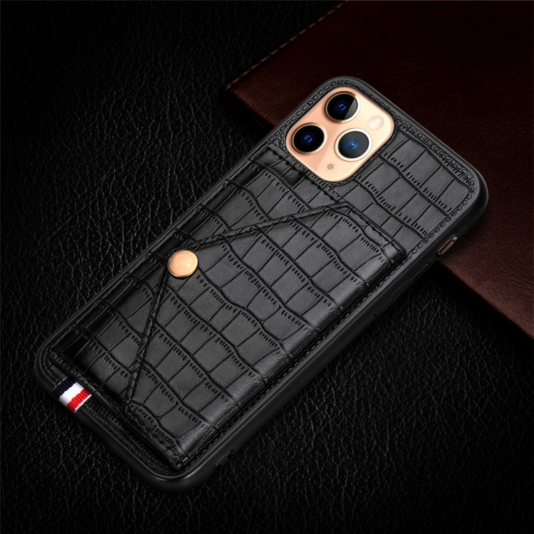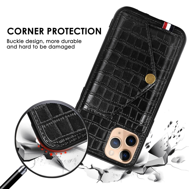 For iPhone 11 Pro Crocodile Pattern PU+TPU+PVC Shatter-resistant Mobile Phone Case with Magnetic Invisible Holder & Holder & Card Slots(Black)